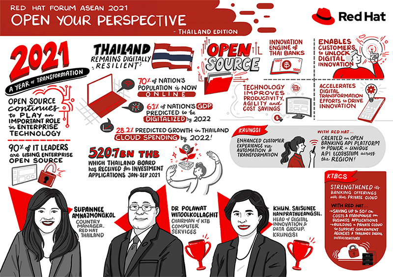 การจัดงาน Red Hat APAC Forum Virtual Experience ภายใต้ธีม “Open Your Perspective” มีจุดมุ่งหมายเพื่อกระตุ้นให้องค์กรต่าง ๆ เพิ่มความยืดหยุ่นในการดำเนินงาน พลิกโฉมองค์กรตามเป้าหมายที่ตั้งไว้ และขับเคลื่อนธุรกิจให้ก้าวไปข้างหน้าโดยอาศัยเทคโนโลยี open source สำหรับในปีนี้ รางวัล Red Hat APAC Innovation Awards ยกย่องความสำเร็จทางด้านเทคโนโลยีของ 24 องค์กรในภูมิภาคนี้ โดยเน้นพิจารณาเรื่องความคิดสร้างสรรค์ การแก้ไขปัญหาอย่างมุ่งมั่น และการใช้โซลูชันของ Red Hat ในเชิงสร้างสรรค์สิ่งใหม่ ๆ