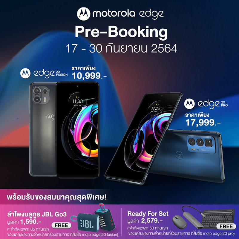 สำหรับ 85 ท่านแรกของแต่ละตัวแทนจำหน่ายที่ทำการ Pre-booking motorola Edge 20 Fusion ที่ร้าน TG Fone, Com7 และ JD รับฟรี!!