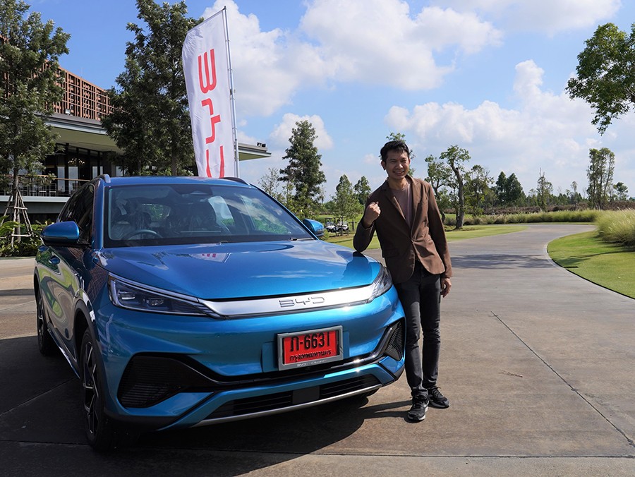 นายกิตติศักดิ์ เที่ยงธรรม ได้รับ BYD ATTO 3 รุ่น Extended Range 1 คัน มูลค่า 1,199,900 บาท ระบุว่า “ผมเดินทางบ่อย ใช้รถทุกวัน และชอบไปพักผ่อนต่างจังหวัด ได้สีฟ้ายิ่งถูกใจเหมือนเนื้อคู่เลย คิดไว้ว่าจะใช้ BYD ATTO 3 คันนี้เป็นรถคู่ใจ ภายในกว้างขวางใส่สัมภาระได้ครบ ชอบการออกแบบภายในที่ไม่ซ้ำใคร เป็นรถอรรถะประโยชน์พาครอบครัวไปเที่ยวได้ ขับไปทำงานดี ทัศนวิสัยเยี่ยม สวยทั้งภายนอกภายในไม่ต้องตกแต่งอะไรเพิ่มเติม ผมดีใจมากๆ ครับ รู้สึกมั่นใจไปกับ BYD”