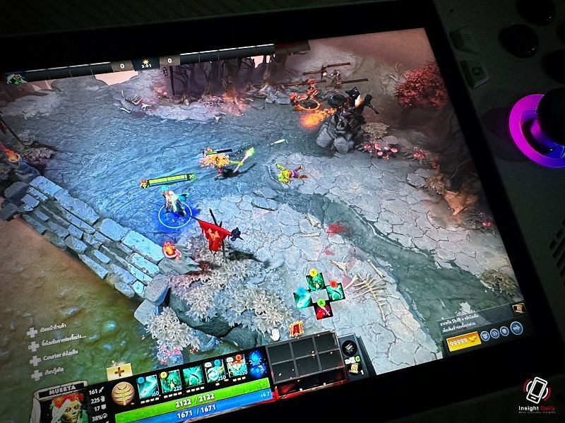 สำหรับใครที่สงสัยว่า ตัวเครื่อง ROG Ally สามารถเล่นเกมทุกเกมได้อย่างไร เพราะบางเกมดูไม่น่าจะรองรับการเล่นเกมในรูปเครื่องเล่นเกมพกพาแบบนี้ คำตอบคือ ซอฟต์แวร์ที่ทาง ASUS เขาทำมา ทำมาได้ดีมากเลยล่ะครับ เพราะถ้าหากเรากำลังจะเล่นเกมที่ไม่เหมาะหรือไม่รองรับการเล่นในรูปเกมคอนโซล ตัวระบบก็จะมีป็อปอัปเด้งขึ้นมาให้เราเลือกรูปแบบการเล่นเกม ถ้าหากเราเลือกรูปแบบที่ปกติไม่เคยเห็นในเกมที่เราคุ้นเคย อย่างเช่น ผมเลือกเล่น Gamepad Mode กับ Dota 2 ตัวเกมก็ปรับเมนูการใช้งานของเกมให้อัตโนมัติเลยครับ แต่บางเกมก็จะเล่นยากขึ้น