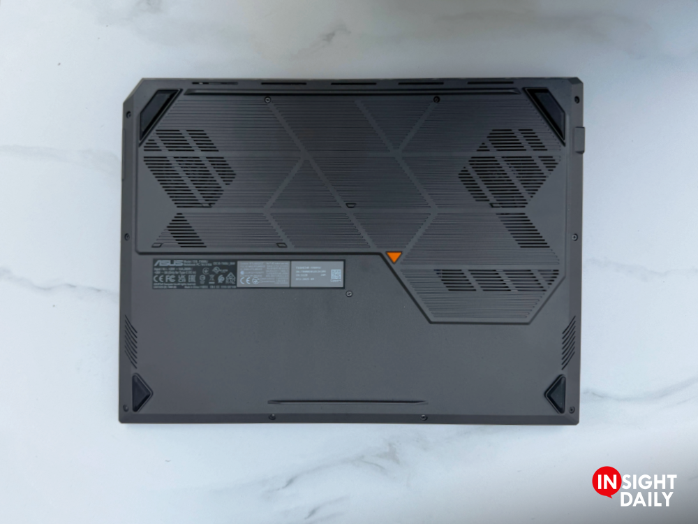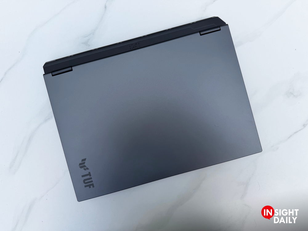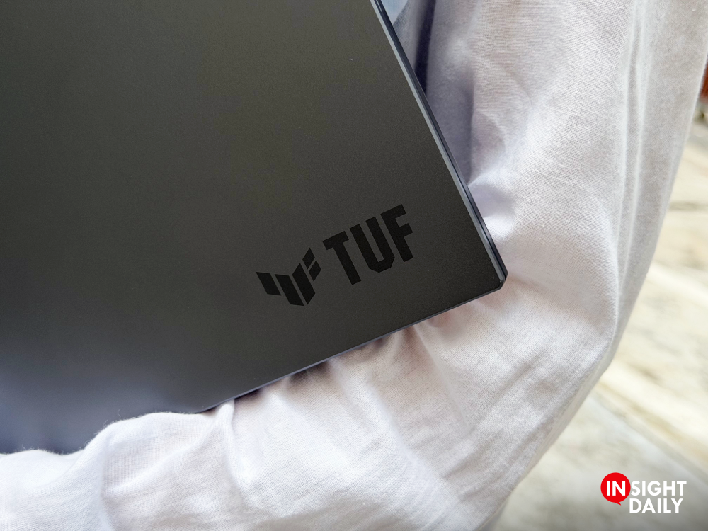 ตัวเครื่องมากับฝาหลังที่เป็นอะลูมิเนียมมีการยิงเลเซอร์เป็นโลโก้ TUF Gaming ดูเรียบหรูแต่แฝงความดุดันไว้ด้วย และสิ่งที่น่าประทับใจคือ ASUS ได้ทำการบ้านมาอย่างดีในการออกแบบใหม่ทั้งหมด (All-new Design) ทำให้ตัวเครื่องมีขนาดเล็กลงกว่ารุ่นก่อนถึง 4.5% ด้วยน้ำหนักเพียง 2.2 กิโลกรัม รวมทั้งยังคงความทนทานตามมาตรฐาน Military Grade อีกด้วย จึงเป็นโน้ตบุ๊กหน้าจอ 16 นิ้ว อีกรุ่นที่ทนทานเป็นอันดับต้น ๆ ในตลาดตอนนี้เลยก็ว่าได้