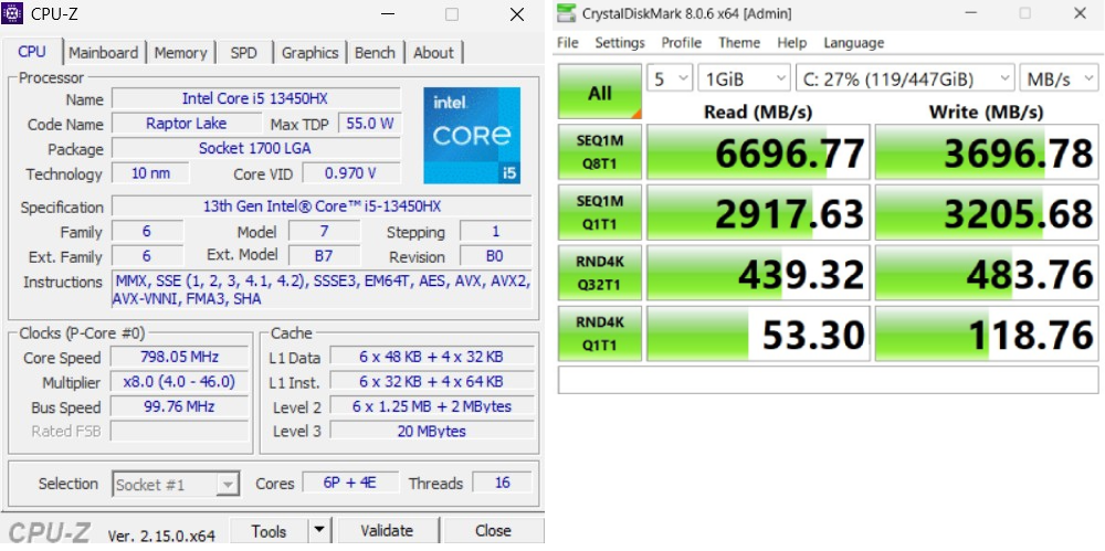 - โปรเซสเซอร์ : 13th Gen Intel® Core™ i5-13450HX (10 cores: 6 P-cores and 4 E-cores, 16 Threads, up to 4.6 GHz)