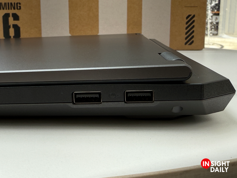 ทางด้านขวาจะมีพอร์ต USB 3.2 Gen2 Type A จำนวน 2 พอร์ต ในขณะที่ด้านข้างซ้ายจะเป็นตำแหน่งศูนย์รวมพอร์ตเชื่อมต่อของตัวเครื่อง ซึ่งประกอบด้วย