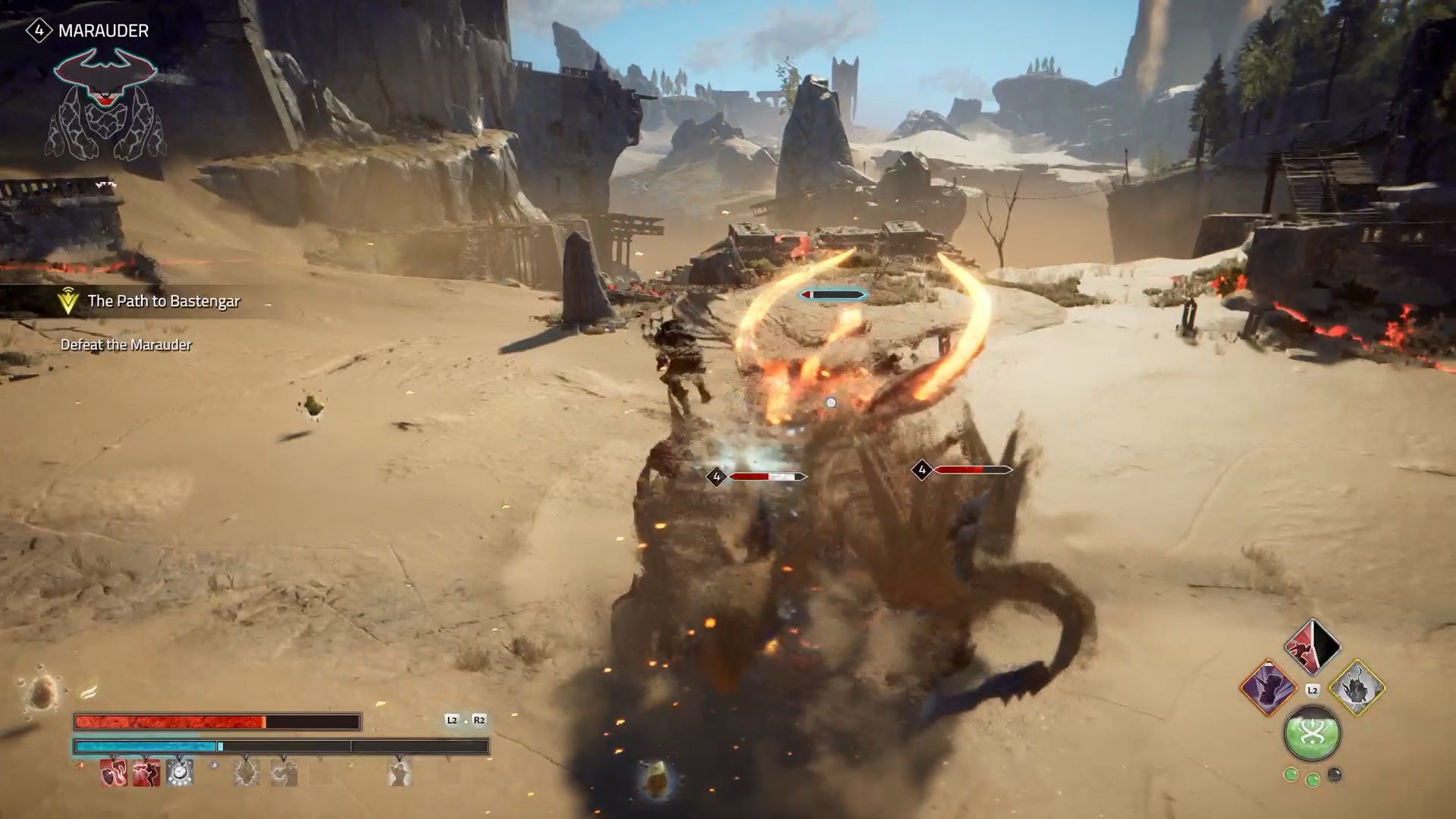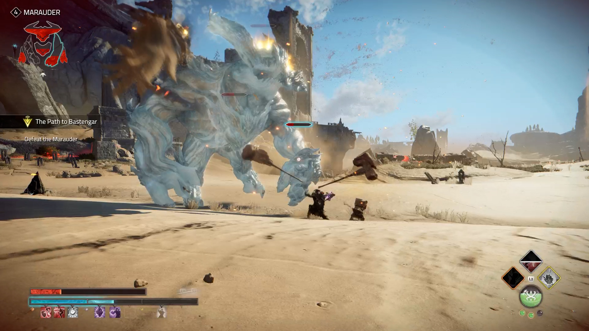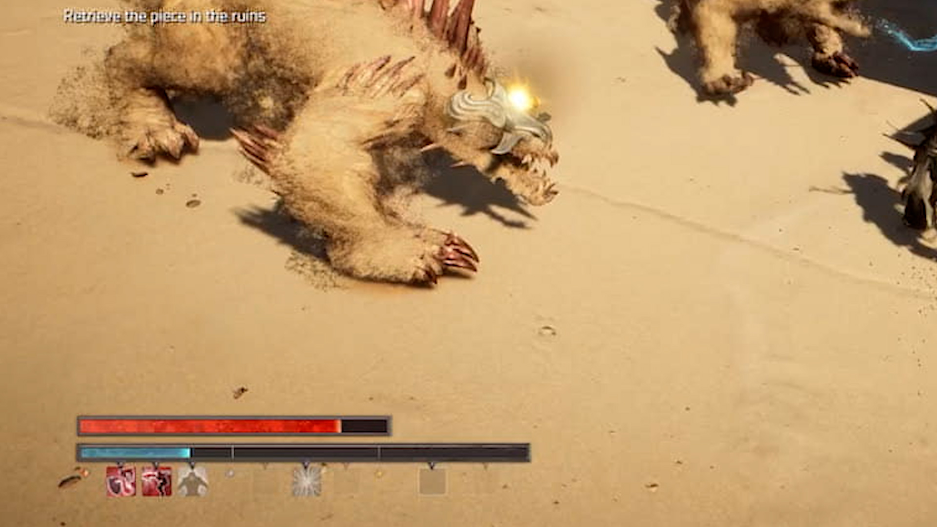 เกริ่นถึงการ parry ไปแล้ว ปล่อยค้างไว้ก็คงไม่ดี ซึ่งเจ้า parry ที่ว่านี้คือการสร้างเกราะทราย (sandskin) เพื่อป้องกันดาเมจได้อย่างสมบูรณ์แบบ ถ้าเป็นมอนสเตอร์ระดับกีกี้ โดยเข้าไปทีเดียวก็จะเป็นน้ำแข็งทันที แต่ถ้าเป็นมอนสเตอร์ขนาดใหญ่ จะต้องกะจังหวะดีๆ ต่อเนื่อง 3 ครั้ง บอสก็จะเป็นน้ำแข็ง เป็นระบบที่ทำให้เราสามารถทำดาเมจกับมอนสเตอร์ได้อย่างฟรีๆ ในระยะเวลาหนึ่งเลยทีเดียว