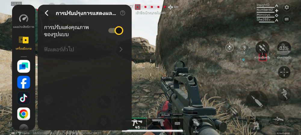 • เพิ่มประสิทธิภาพในการต่อสู้ตอนกลางคืน มองเห็นศัตรูได้ชัดเจนยิ่งขึ้น ระบบสามารถตรวจจับฉากในเกมได้อย่างชาญฉลาด พร้อมปรับเพิ่มความสว่างในส่วนที่มืดของภาพ ทำให้การมองเห็นในฉากกลางคืนคมชัดมากขึ้น เล็งเป้าได้แม่นยำ และยิงได้อย่างมั่นใจ