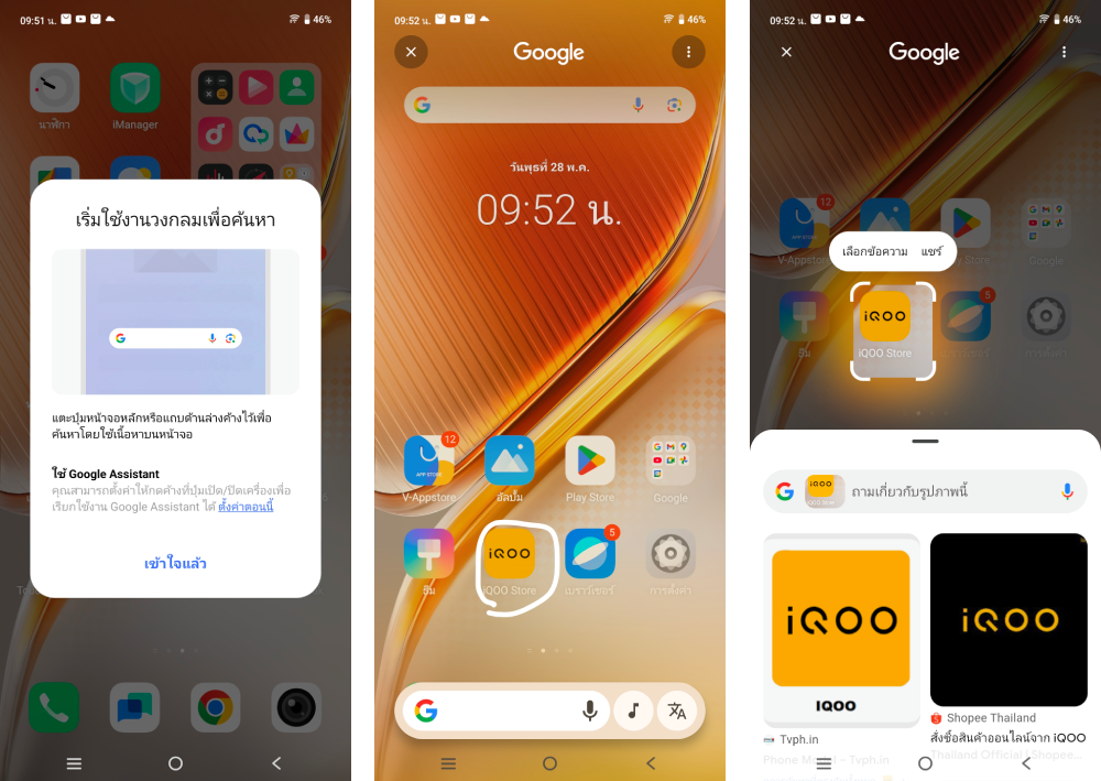 การเรียกใช้งาน : ไปยังหน้าต่างหรือรูปภาพที่เราต้องการค้นหาข้อมูล > กดปุ่มโฮมค้าง > วงล้อมรอบวัตถุที่ต้องการค้นหา