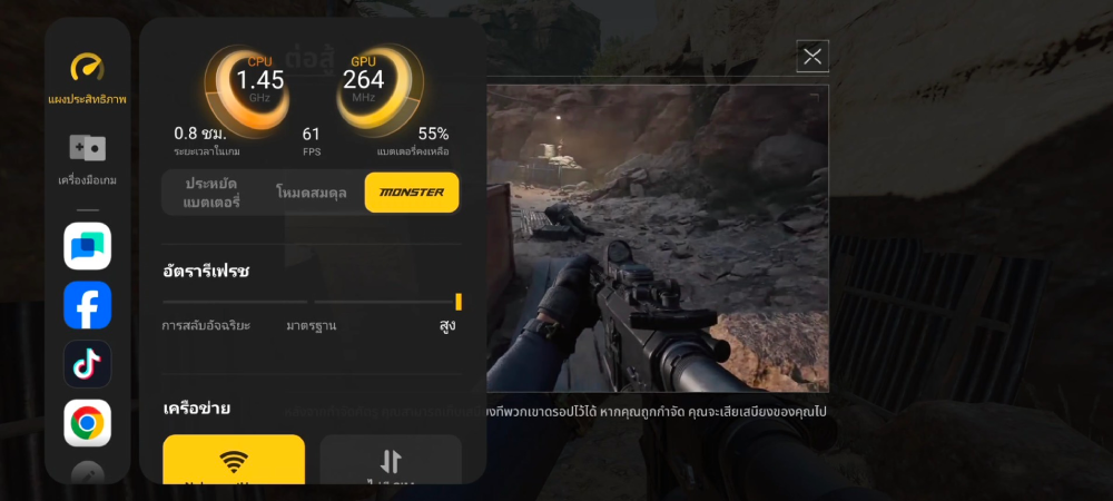 iQOO Neo 10 มากับ Ultra Game Mode เป็นซอฟต์แวร์เกมมิ่งสำหรับปรับแต่งทรัพยากรตัวเครื่องให้เหมาะสม หรือเรียกใช้ฟีเจอร์เสริมช่วยการเล่นเกม ซึ่งโหมดปรับแต่ง Performance จะมีพรีเซ็ตสำเร็จรูปมาให้เลือกใช้ด้วยกัน 3 โหมด คือ โหมดประหยัดพลังงาน, โหมดสมดุล และ Monster Mode ที่จะรีดเข้นทรัพยากรตัวเครื่องออกมาทุกหยด