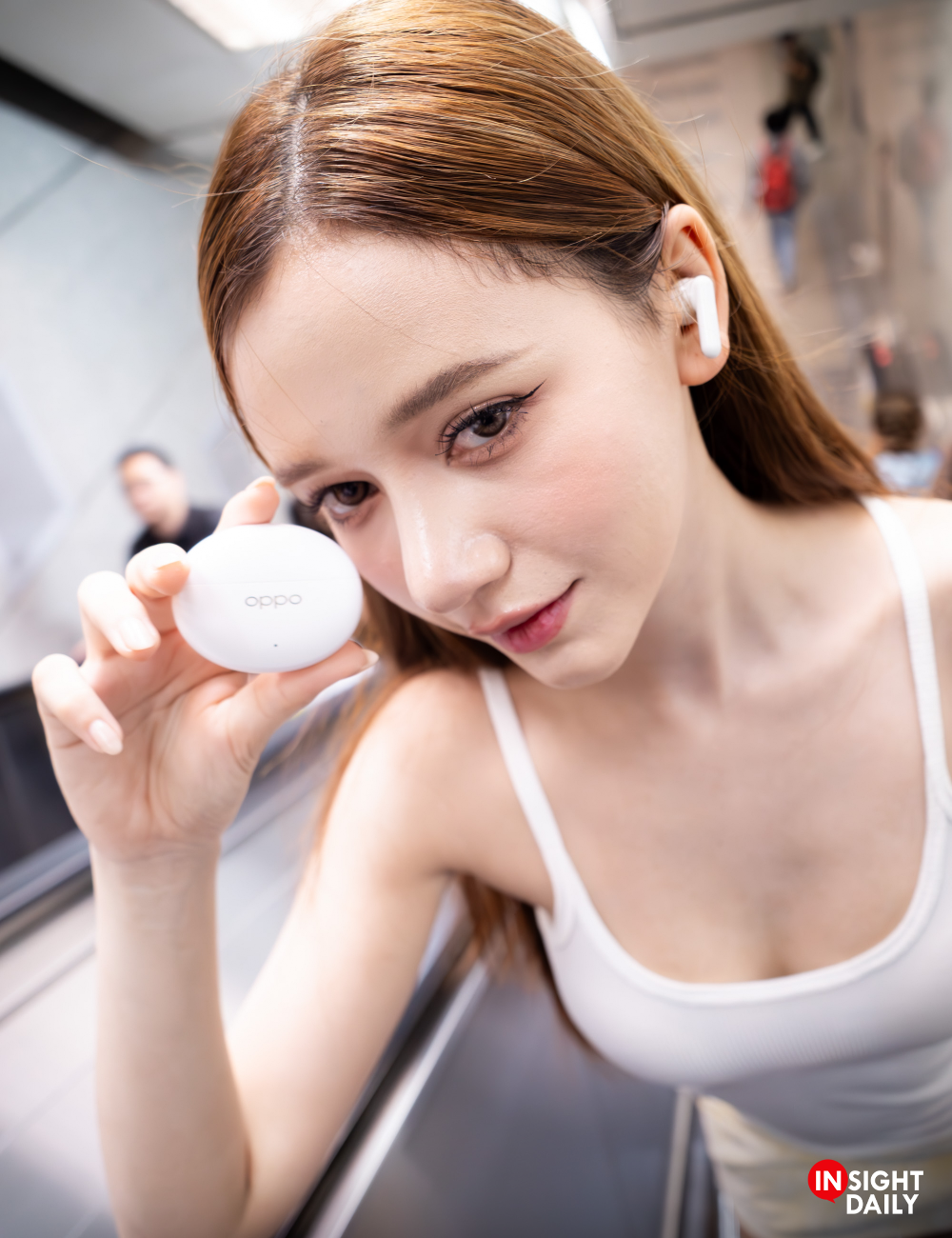 OPPO Enco Air5 Pro เป็นหูฟังไร้สาย TWS ที่มากับดีไซน์แบบ In-Ear ที่จะมีส่วนของจุกซิลิโคนสำหรับสอดเข้าไปในรูหู (Ear Canal) เพื่อให้มีความกระชับ ใส่สบาย มีความคล่องตัว รวมทั้งยังมีส่วนช่วยบล็อกเสียงรบกวนจากภายนอก (Passive Noise Isolation) เข้ามา ที่ก้านหูฟังจะเป็นพื้นที่ของ Touch sensor สำหรับแตะสั่งการ และมีไมโครโฟน AI ติดตั้งอยู่ 3 จุดต่อข้าง โดยหูฟังแต่ละข้างมีน้ำหนักเพียง 4.4 กรัม เท่านั้น ส่วนใส่ได้สบายในระดับ “Wear it, forget it” หรือก็คือเบาจนลืมว่าใส่ได้เลยครับ