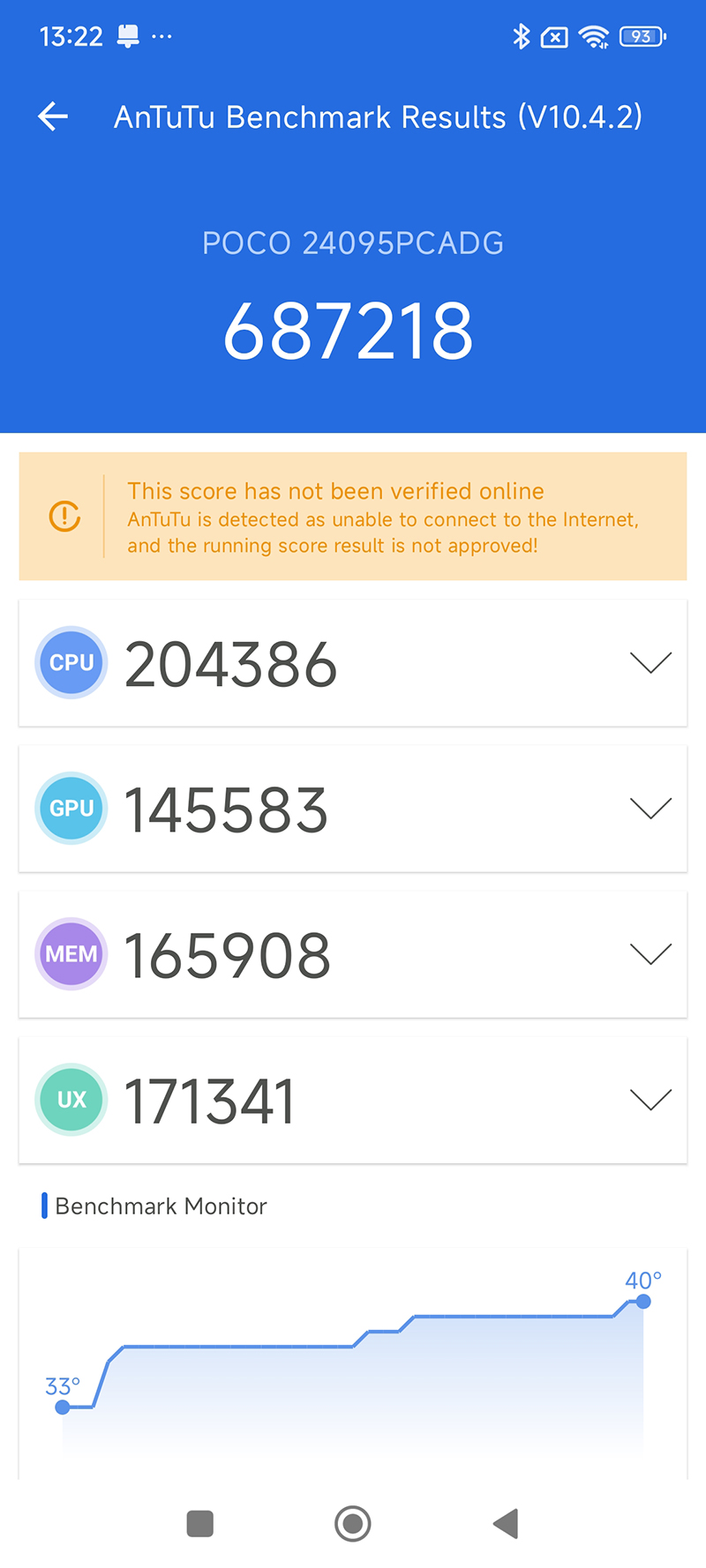 ผลคะแนนทดสอบด้วยแอปพลิคชั่น Benchmark