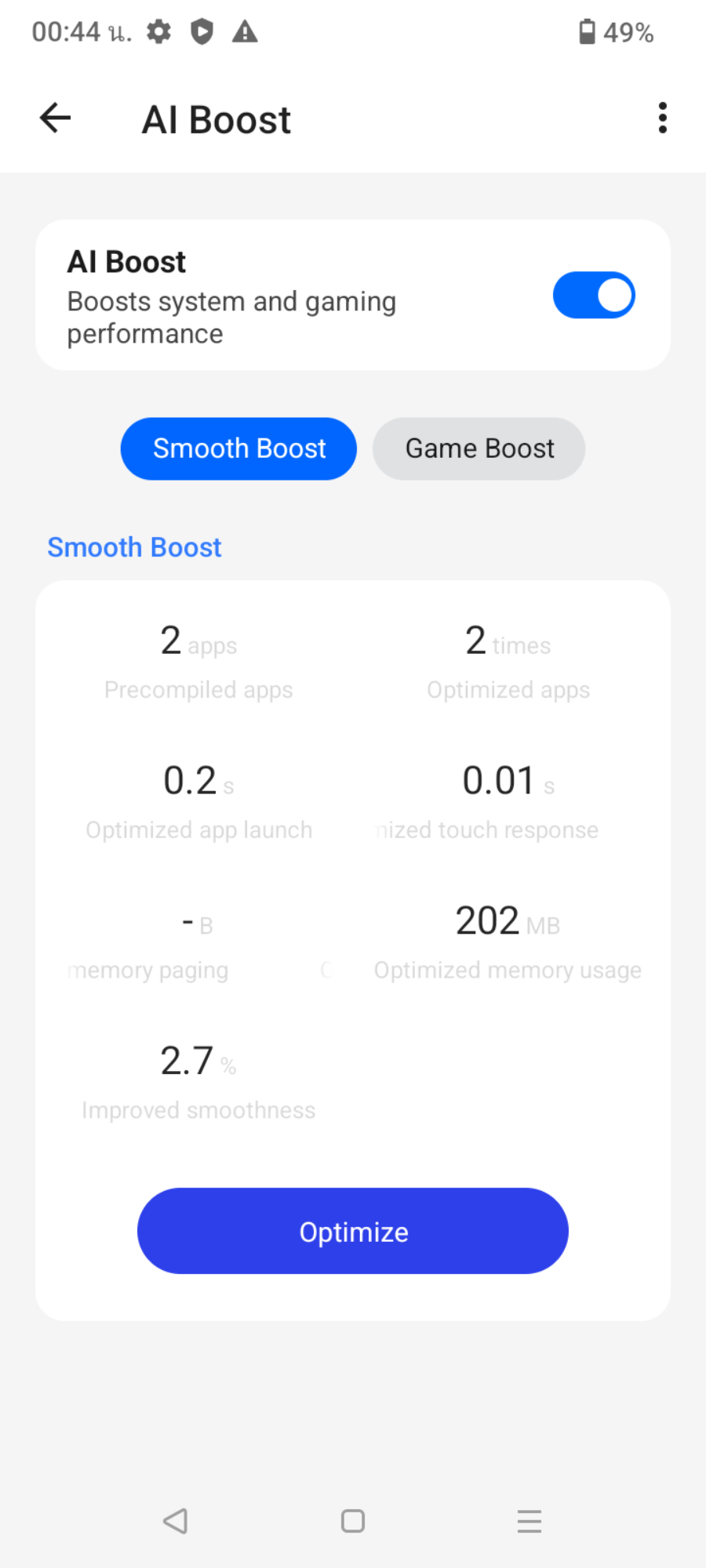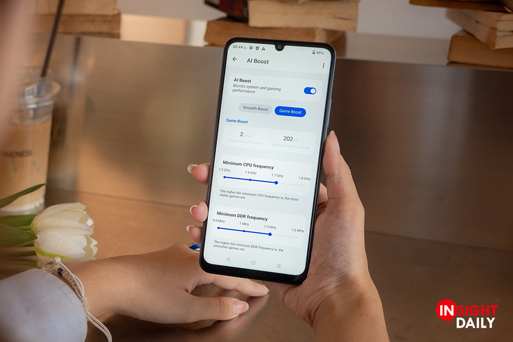 หนึ่งในความลื่นไหลตลอดการใช้งานบน realme C63 ก็คือ การมี AI Boost เข้ามาช่วยบริหารจัดการทรัพยากรบนตัวเครื่องผ่านการวิเคราะห์ ประเมิน และจัดการของ AI ทำให้ประสบการณ์การใช้งานด้านซอฟต์แวร์ตลอดการใช้งานตัวเครื่องเป็นไปอย่างราบรื่น สมูธ หรือถ้าใครอยากจะเข้าจัดการบริหารทรัพยากรด้วยตนเองตามความชอบของเจ้าของเครื่องก็ทำได้เช่นกัน