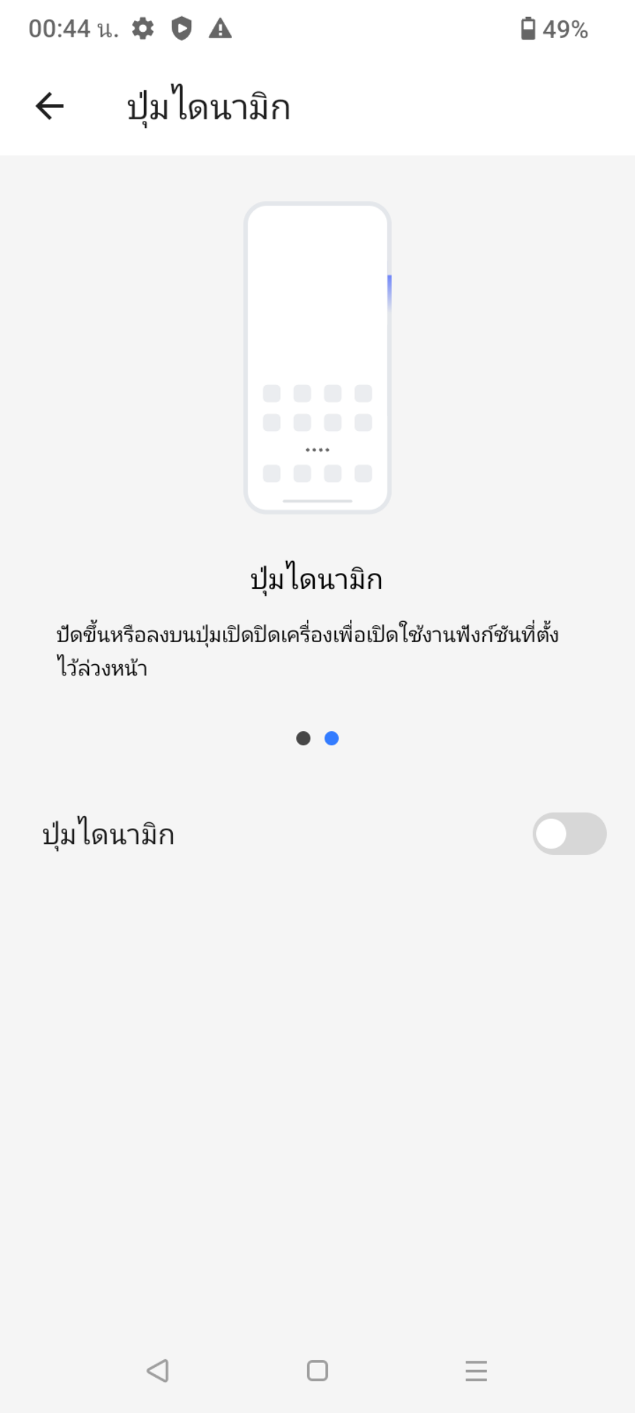 การเข้าไปปรับแต่งเมนู : การตั้งค่า > ฟีเจอร์พิเศษ > ปุ่มไดนามิก