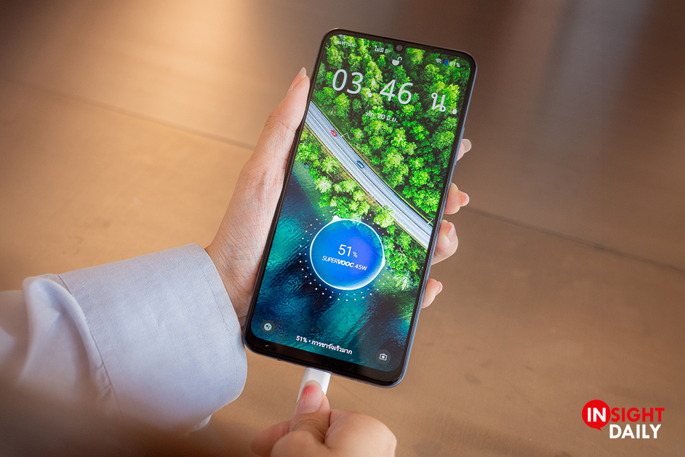 เรื่องของ “แบตเตอรี่และเทคโนโลยีชาร์จไว” เป็นอีกหนึ่งจุดเด่นที่ต้องชม realme เลยกับการนำเทคโนโลยีชาร์จไว 45W มาใส่บน realme C63 ด้วย เพราะปกติแล้วบนสมาร์ตโฟนช่วงราคานี้เราจะเจอชาร์จไวสูงสุดที่ 33W เท่านั้นครับ ดังนั้นถ้าเทียบเรื่องความเร็วในการชาร์จของสมาร์ตโฟนในช่วงราคาเดียว “realme C63” เร็วสุดแน่นอน! โดยสามารถชาร์จ 0~20% ใน 10 นาที, ชาร์จ 0~50% ใน 30 นาที และชาร์จจนเต็ม 100% ใช้เวลาเฉลี่ย 1 ชั่วโมง 20 นาที