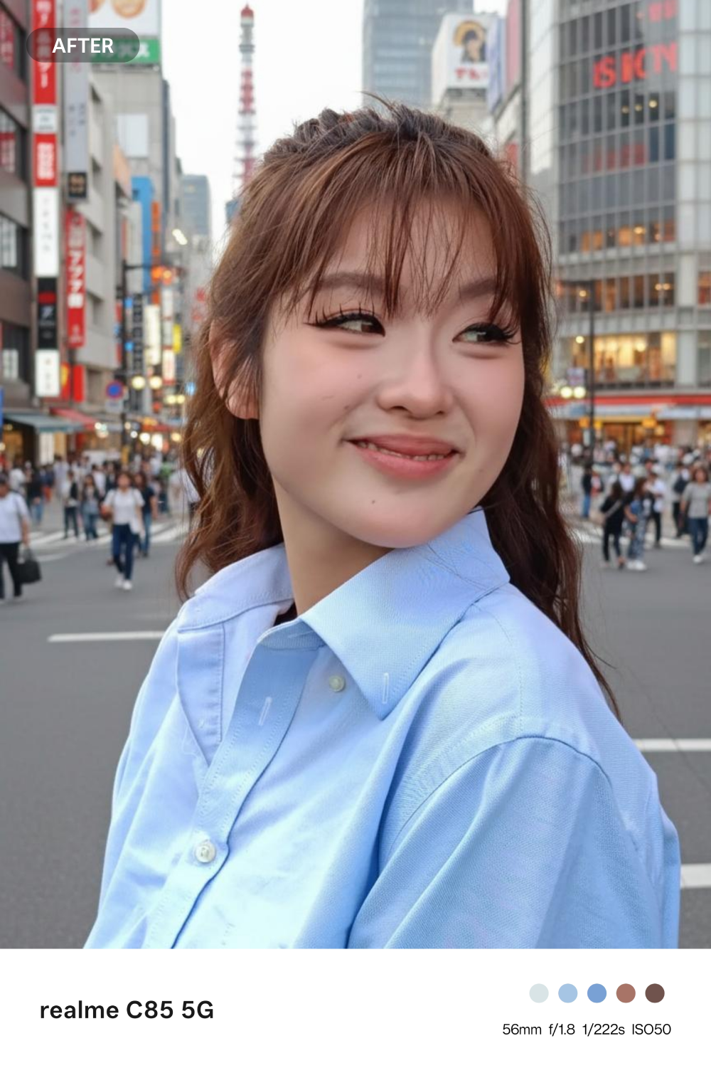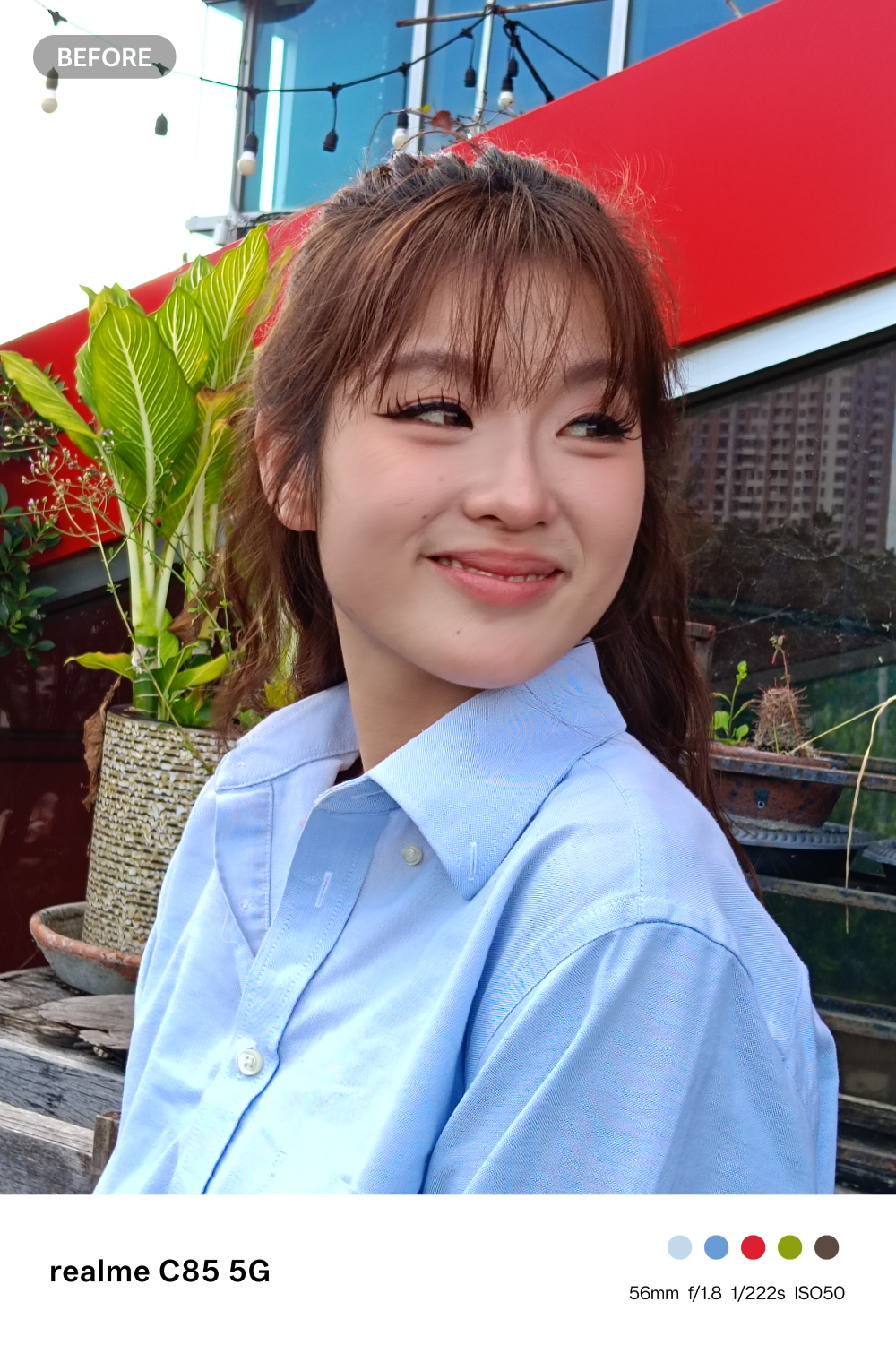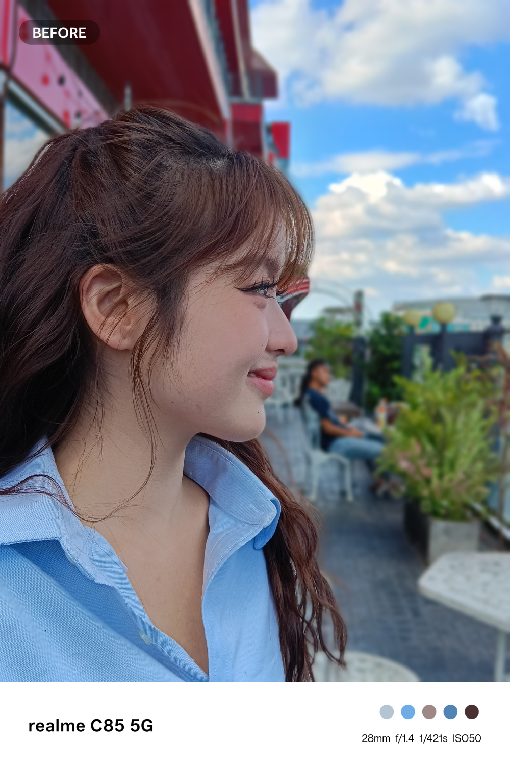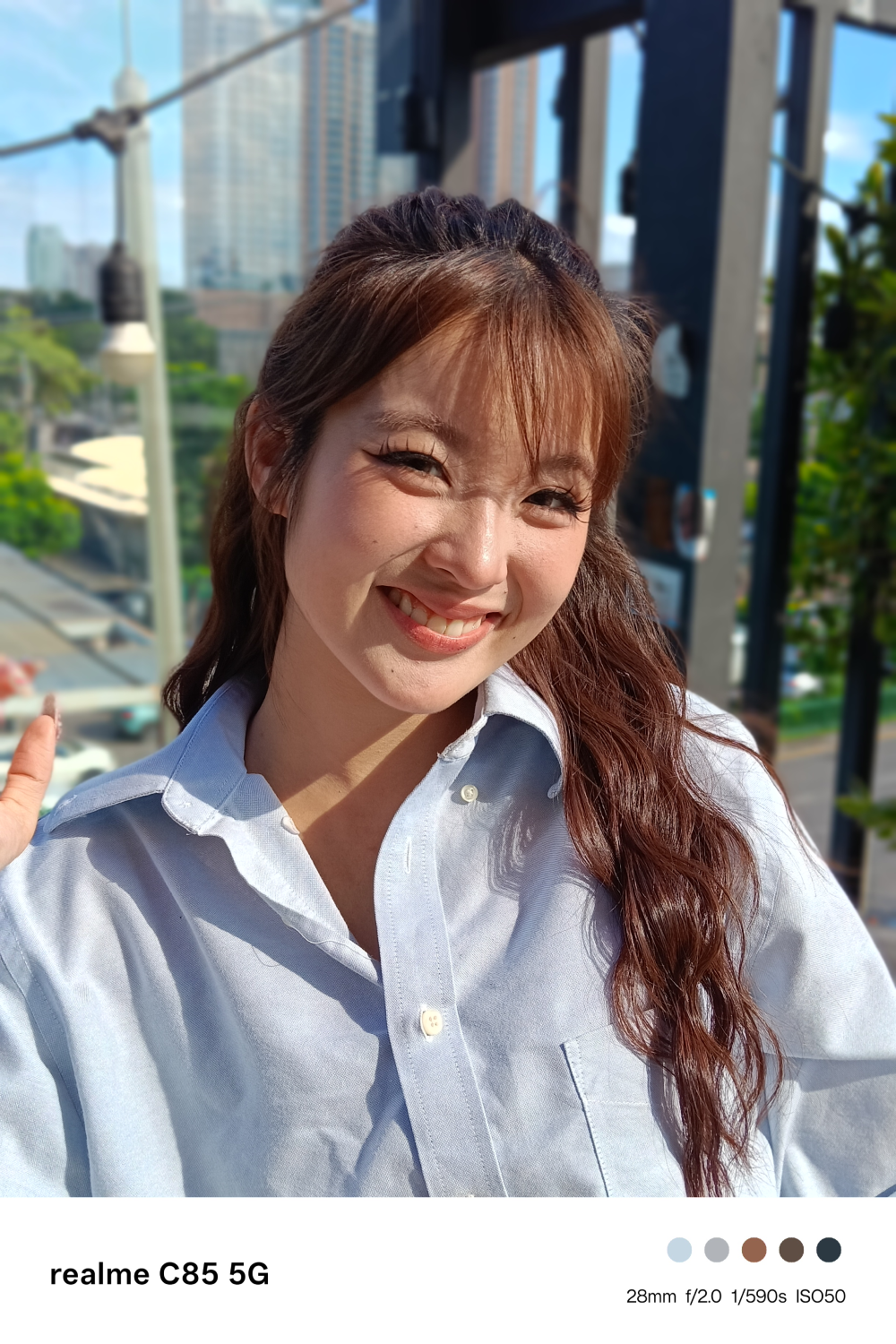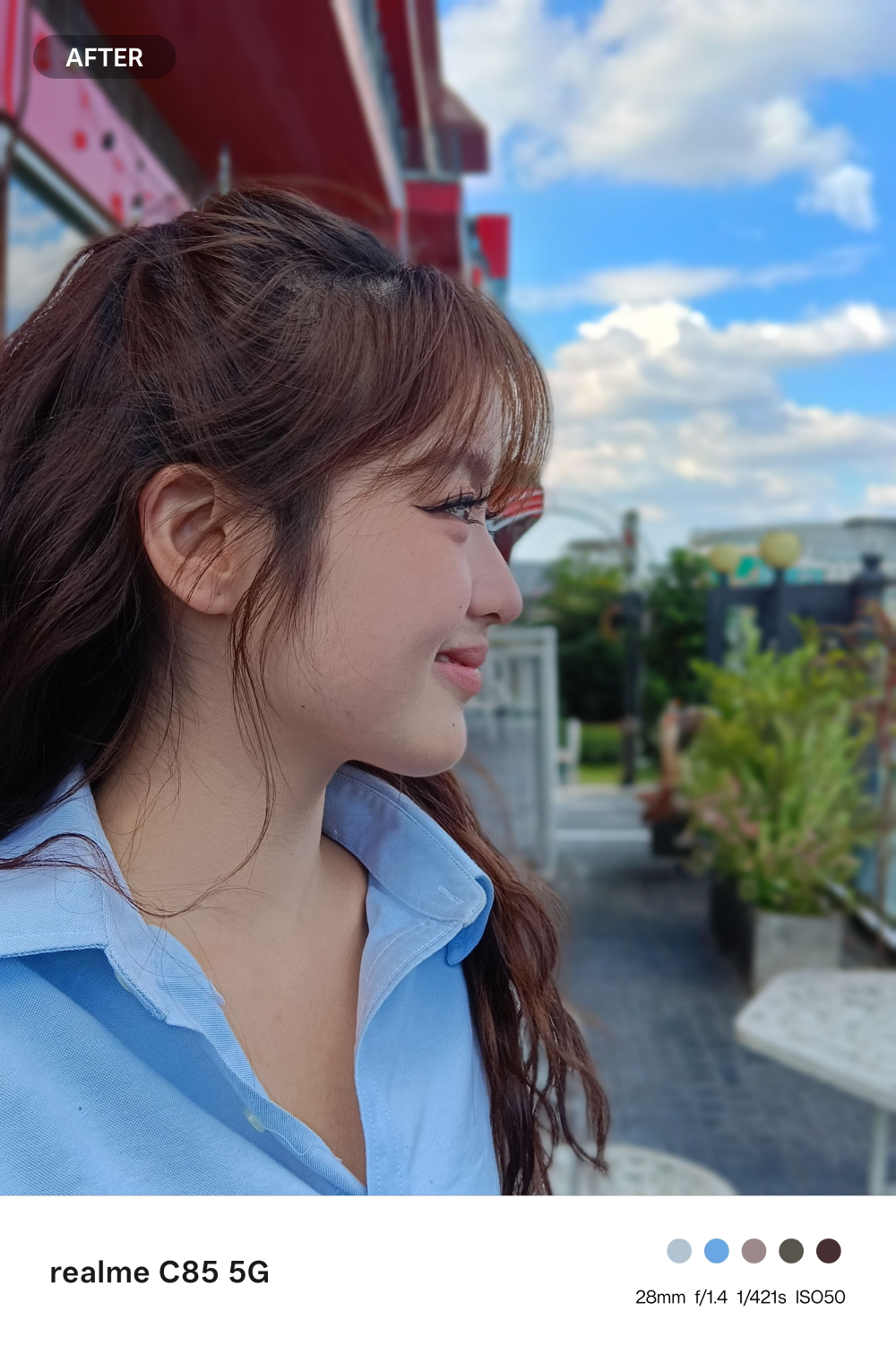 realme C85 5G มาพร้อมกล้องหลัง 50MP SONY AI Main Camera ใช้เซนเซอร์ Sony IMX852 ความละเอียด 50MP (f/1.8) พร้อมกล้องหน้า 8MP AI Camera ความละเอียด 8MP (f/2.0) มาพร้อมโหมดถ่ายภาพให้เลือกใช้งานกำลังพอดี ไม่มาก ไม่น้อย ที่สำคัญคือถ่ายสนุก ผลงานที่ได้อาจจะไม่หวือหวา ด้วยความที่ลูกเล่นไม่มาก แต่ก็สวยดีเลยทีเดียว