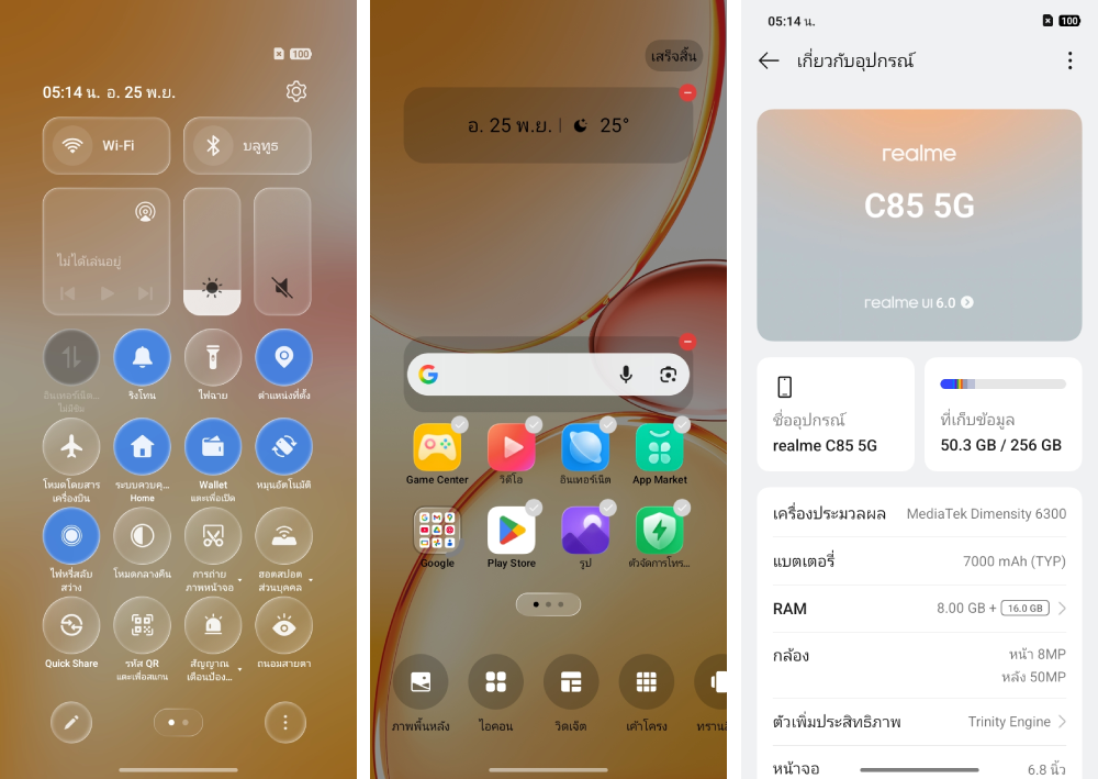 - ระบบปฏิบัติการ : realme UI 6.0, Android 15