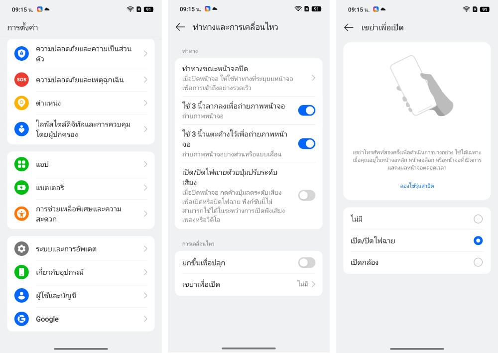 รวมไปถึงฟีเจอร์ใหม่ ๆ ทั้งการปรับแต่งความลึกของภาพ Wallpaper ให้ดูมีลูกเล่นมากกว่าภาพปกติ และการเขย่าเพื่อเปิด ด้วยการเขย่าโทรศัพท์สองครั้งอย่างรวดเร็ว เพื่อเปิดใช้งานไฟฉายหรือเปิดกล้องทันที โดยสามารถเข้าไปตั้งค่าการใช้งานได้ที่ การช่วยเหลือพิเศษและความสะดวก > ท่าทางและการเคลื่อนไหว > เขย่าเพื่อเปิด