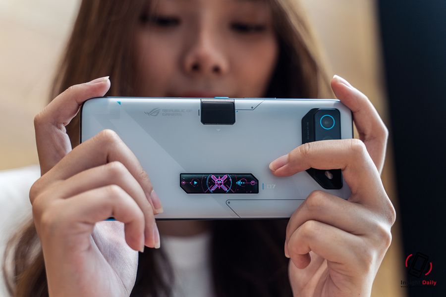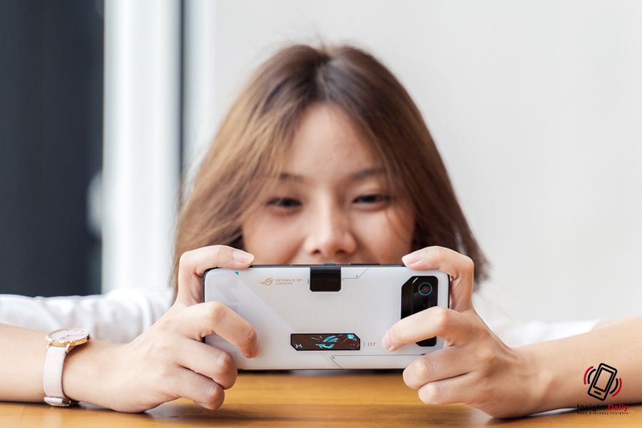 ‘ยังครับ ยังไม่จบ!’ เพราะนี้คือสมาร์ตโฟนที่เกิดมาเพื่อการเล่นเกมมือถือ ดังนั้นจะมาแบบธรรมดาไม่ได้ ในด้านของการสั่งการและควบคุมนอกจากการสั่งการผ่านการทัชบนหน้าจอแล้ว ในด้านกายภาพ ROG Phone 7 Ultimate ยังมาพร้อม Air Trigger ซึ่งเป็นเกมมิ่งฟีเจอร์ที่ใช้ปุ่มสัมผัสเทคโนโลยีอัลตร้าโซนิค เข้ามาช่วยเพิ่มมิติในการเล่นเกมให้มากขึ้น โดยบนตัวเครื่องจะมีเซ็นเซอร์ติดตั้งมาสองจุด (มุมซ้ายและขวาบน เมื่อใช้งานตัวเครื่องในแนวนอน)