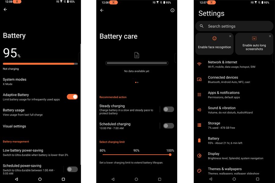 แต่เมื่อไรก็ตามที่เปิดสลับโหมดการใช้งานไปที่โหมดประสิทธิภาพสูง หรือ X Mode มันจะเป็นคนละเรื่องเลย เพราะเป็นโหมดที่ถูกออกแบบมาให้ตัวเครื่องรีดเค้นประสิทธิภาพที่ดีที่สุดของตัวเครื่องออกมา ด้วยการดึงทรัพยากรเครื่องที่สูงขึ้นจากเดิม ดังนั้นก็ต้องแลกมากับการใช้พลังงานที่เพิ่มขึ้นด้วย จากที่ผมลองทดสอบดูทั้งสองโหมดคือ Dynamic และ X Mode จะกินพลังงานเพิ่มขึ้นโดยประมาณจากที่ผมกะเอานะครับ ประมาณ 30 และ 50% ตามลำดับ จากโหมดปกติ