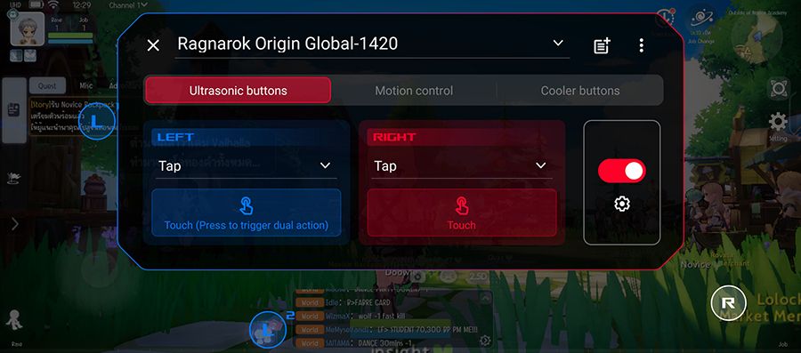 เราสามารถตั้งค่าการใช้งานได้ทั้งหมด 9 รูปแบบ ตามความถนัดเพื่อการควบคุมเกมได้หลากหลายกว่าเดิม เปรียบเสมือนมีอีกสองมือช่วยเล่นเกมก็ได้ครับ ฟีเจอร์นี้ถ้าใครชอบเล่นเกมแนว PUBG หรือ ROV รับรองว่าถูกใจแน่นอน เพราะเซ็ตคีย์ลัดในการกดสกิลคอมโบได้เยอะกว่าการทัชหน้าจอปกติ สามารถช่วยชิงจังหวะต้องเข้าสู่แบทเทิลได้ด้วย