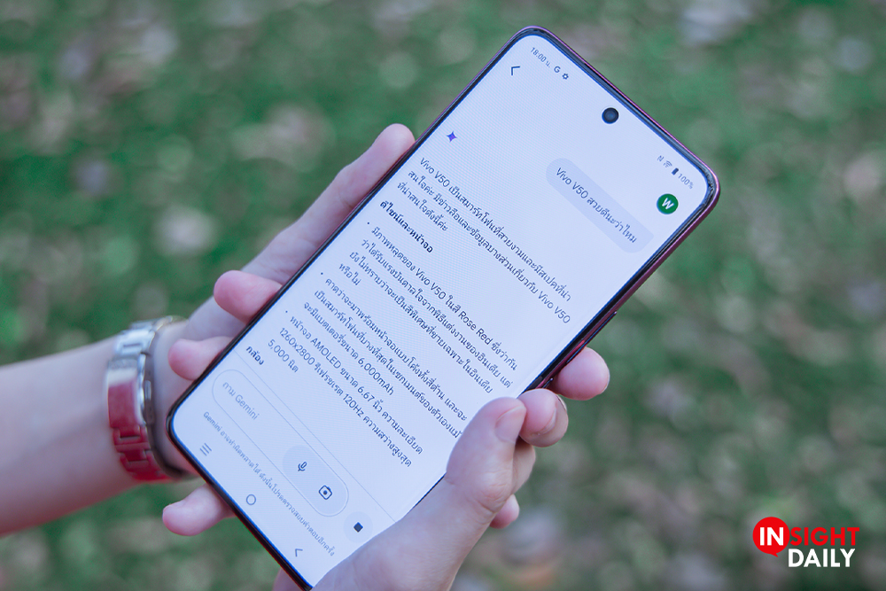 ใช้ Gemini ที่เป็น AI หลักบน Funtouch OS ในรูปแบบผู้ช่วยส่วนตัว ที่รวมขุมพลังการค้นหาของ Google และเทคโนโลยี Machine Learning ไว้ในที่เดียว เลยช่วยอำนวยความสะดวกในด้านไลฟ์สไตล์ได้ลงตัวเลยครับ เช่น
