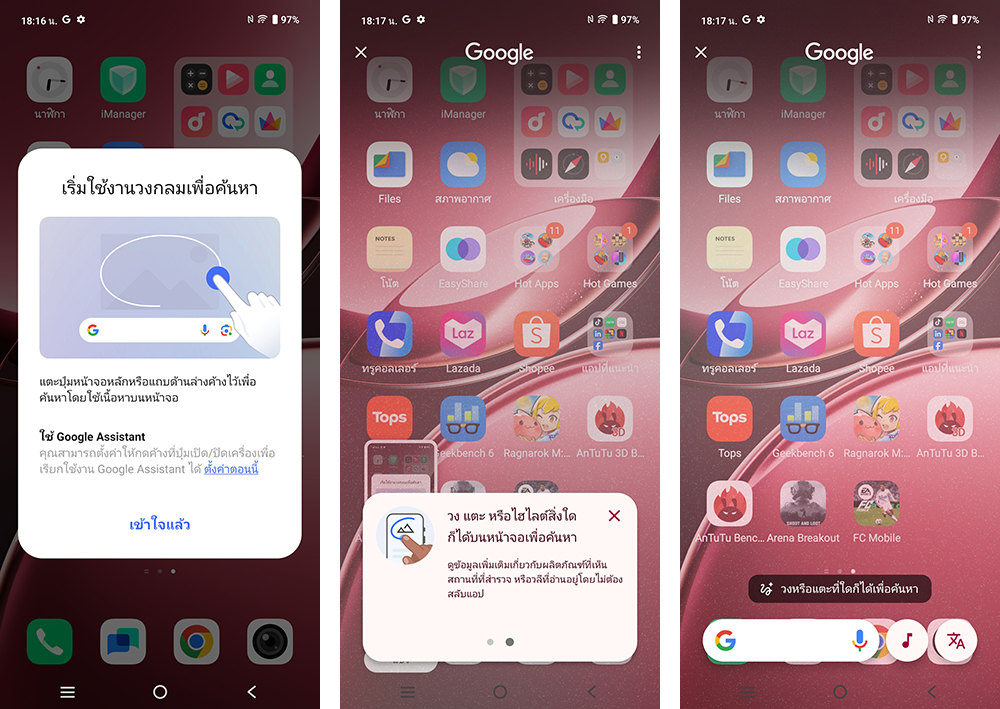 “แค่วงก็พร้อมค้นหา” เป็นฟีเจอร์ที่ให้ AI ช่วยเสิร์ชข้อมูลที่เราต้องการให้ผ่านการออกคำสั่ง “วง” หรือ วาดวงกลมล้อมรอบเนื้อหาที่ต้องการเสิร์ช ช่วยลดความยุ่งยาก ขั้นตอนการหาข้อมูลให้สั้นและจบในทันที