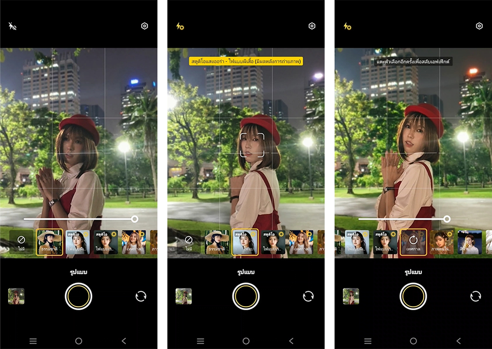 เซลฟี่กลางคืน + เปิดแสงออร่าหน้าจอ