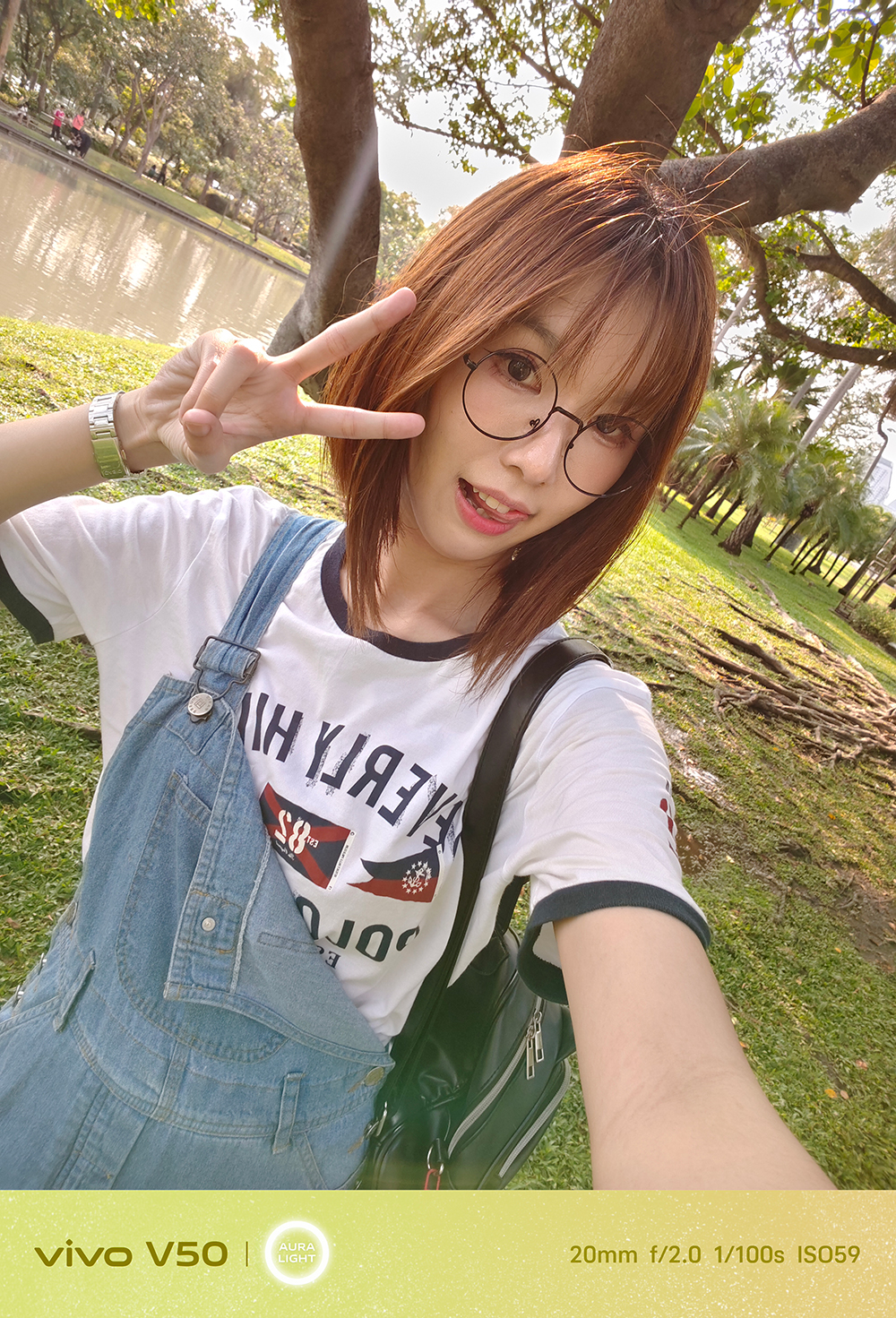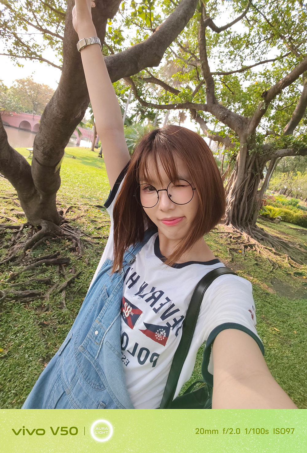 กล้องหน้าของ vivo V50 มาพร้อมความละเอียดสูง 50MP ให้มุมมองกว้าง 92 องศา ทำให้สามารถเก็บภาพเซลฟี่แบบกลุ่มได้ (Group Selfie) และยังใช้เทคโนโลยี Ultra-Clear Backlit Selfie ที่ vivo พัฒนาขึ้นเอง เพื่อลดความมัวของภาพย้อนแสง ผสานกับระบบเติมแสง AI อัตโนมัติแบบหลายมุมมอง และ AI Facial Contouring Technology เทคโนโลยีอัจฉริยะที่ช่วยปรับโครงหน้าให้สมดุลอย่างเป็นธรรมชาติ ดังนั้นใครที่ชอบใช้กล้องถ่ายเซลฟี่รับรองว่า คุณจะได้ภาพเซลฟี่สวยไม่เหมือนกล้องมือถือทั่วไปแน่นอน