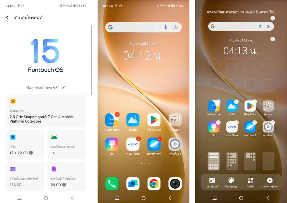 อินเตอร์เฟซ Funtouch OS 15 บน vivo V60