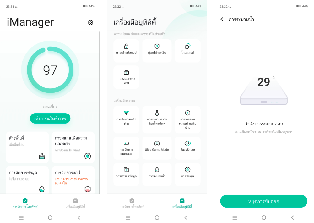 วิธีใช้งาน : แอป iManager → เครื่องมือยูทิลิตี้ → การระบายน้ำ