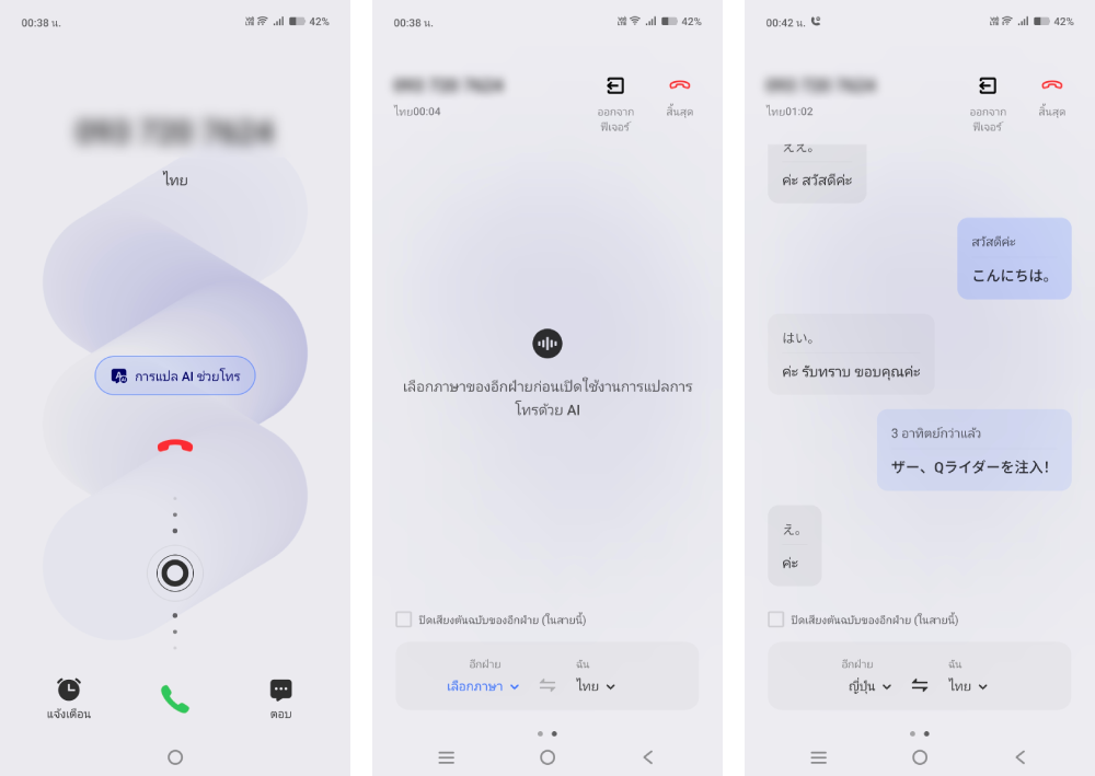 ✓ แสดงข้อความบทสนทนาแบบเรียลไทม์และสรุปประเด็นสำคัญให้อัตโนมัติหลังจบการโทร