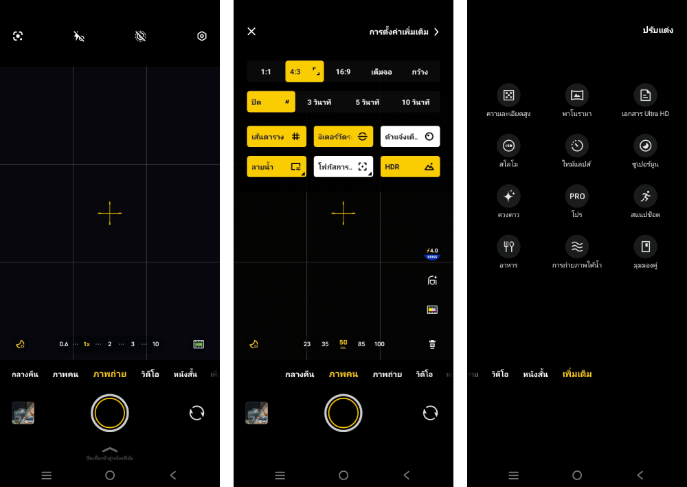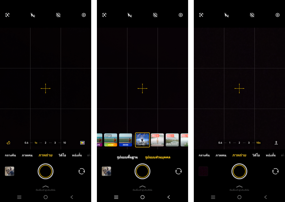 วิธีใช้งาน : กล้อง → โหมดภาพถ่าย → ไอคอนมุมขวาล่าง → เวที