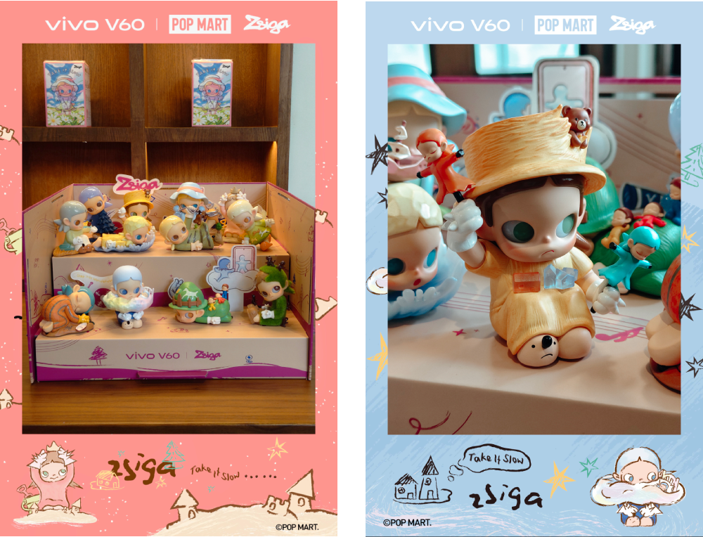 ความพิเศษพร้อมเสิร์ฟ! กับ vivo V60 x POP MART : ZSIGA Exclusive Collaboration Gift Set บ็อกเซ็ตสุดคิวท์น้อง Zsiga (ซิก้า) ที่จับมือกับ POP MART โดยในเซ็ตประกอบด้วย กล่องสุ่ม Zsiga คอลเลกชัน Take It Slow ทั้งหมด 12 กล่อง (พร้อมให้ไปลุ้นว่าใน 12 ตัวนี้ จะได้น้องตัวซีเคร็ทกันหรือเปล่า), สายคล้องโทรศัพท์, กระเป๋าใส่โทรศัพท์, เคส, สติ๊กเกอร์, ของตกแต่ง และ Gift Card*