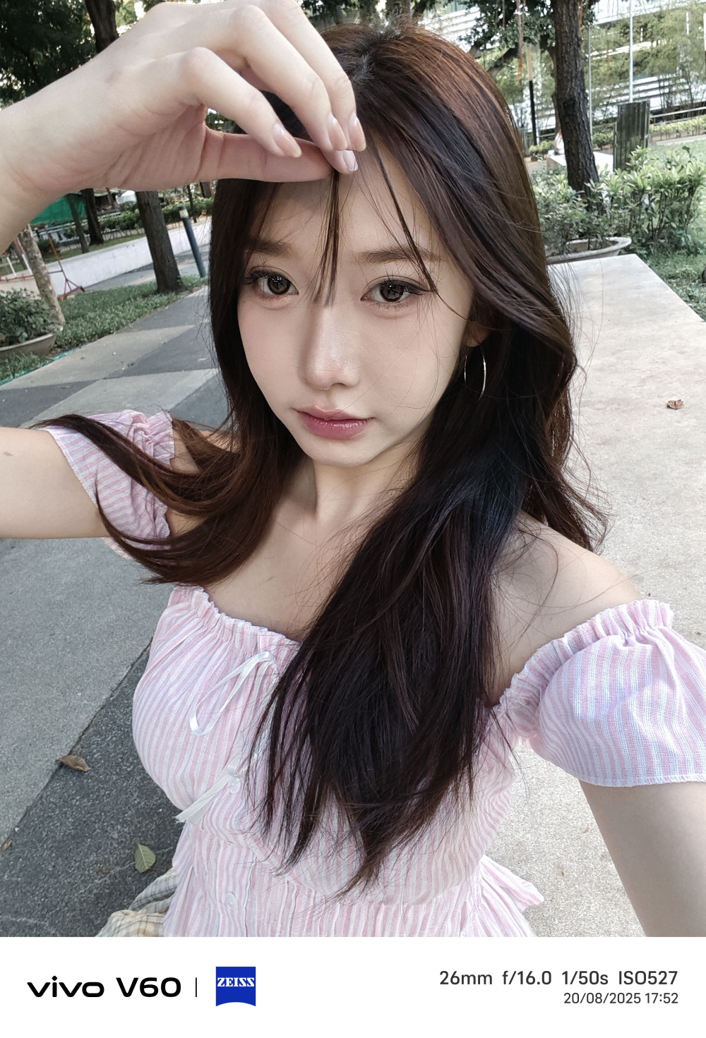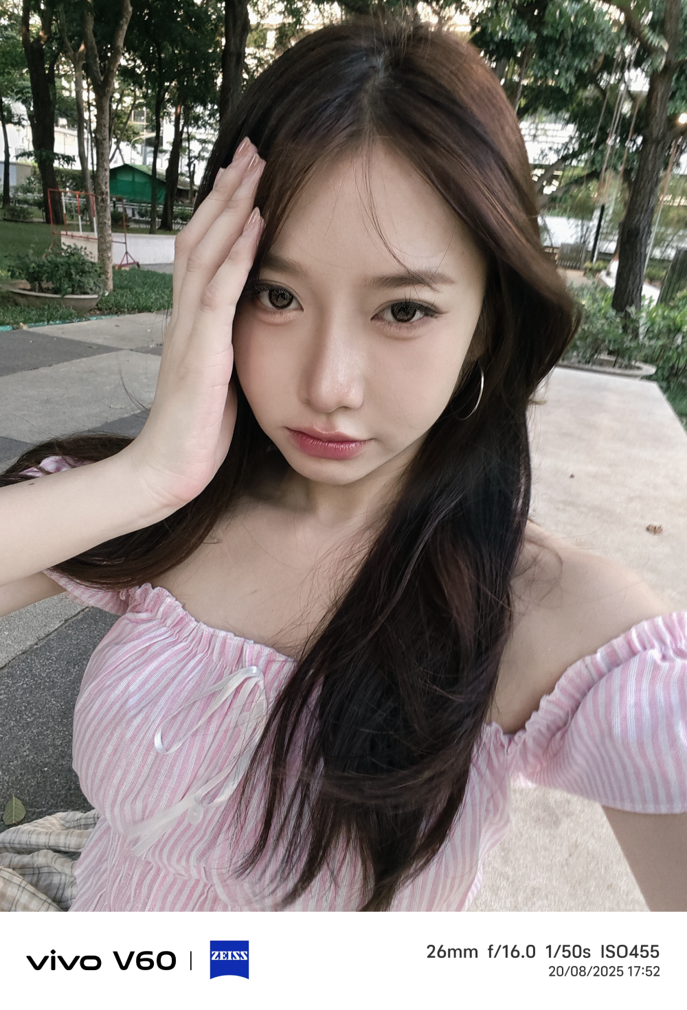 กล้องหน้าของ vivo V60 มาพร้อมเลนส์ ZEISS ความละเอียดสูง 50 ล้านพิกเซล มุมมองกว้าง 92 องศา สามารถเก็บภาพเซลฟี่แบบกลุ่มได้ครบ ผสานกับระบบเติมแสง AI อัตโนมัติแบบหลายมุมมอง และ AI Facial Contouring Technology เทคโนโลยีอัจฉริยะที่ช่วยปรับโครงหน้าให้สมดุลอย่างเป็นธรรมชาติ
