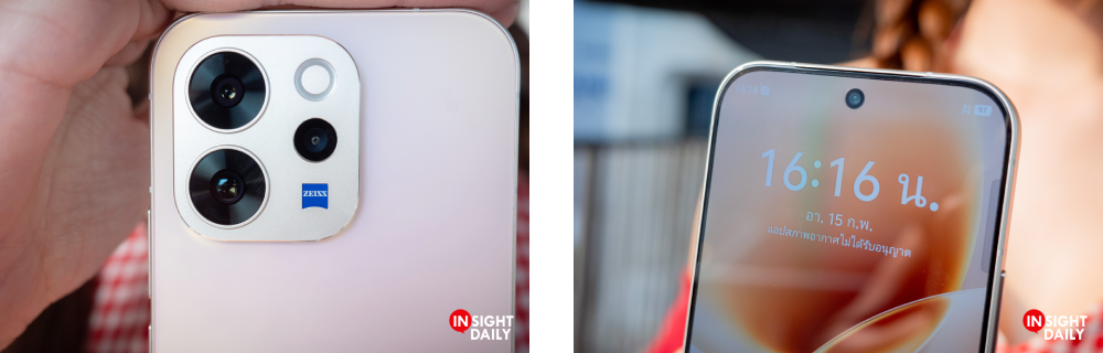 ในขณะที่กรอบโมดูลกล้องเลือกใช้วัสดุอะลูมิเนียม รวมถึงขอบตัวเครื่องก็เลือกใช้วัสดุอะลูมิเนียมด้วยเช่นกัน ให้ฟิลลิ่งการถือจับเหมือนกับ vivo X300 เลยทีเดียวครับ ดูพรีเมียม สวยหรู และทําให้จับถือเรียบเนียนสบายมือ ซึ่งการปรับดีไซน์ใหม่ของ vivo V70 เป็นการปรับดีไซน์ในรอบ 3 เจนเนอเรชั่นก็ว่าได้ เพราะครั้งสุดท้ายที่มีการปรับดีไซน์บน V Series น่าจะต้องย้อนไปตอน vivo V40 ที่ปรับดีไซน์จาก vivo V30 Series 5G