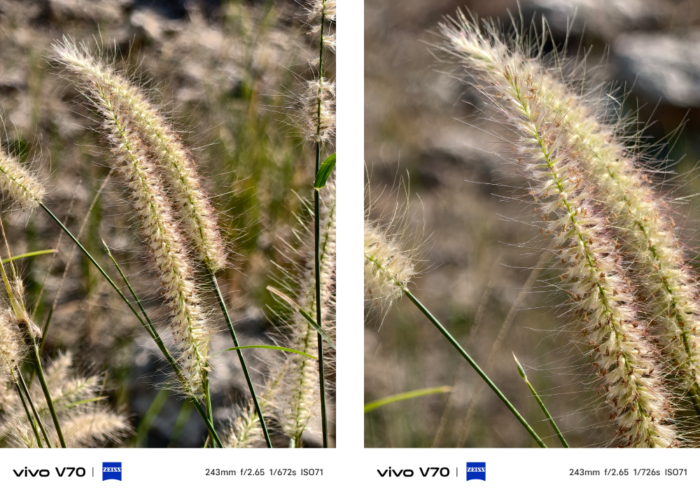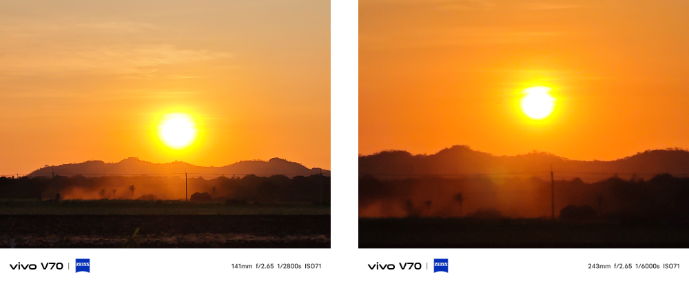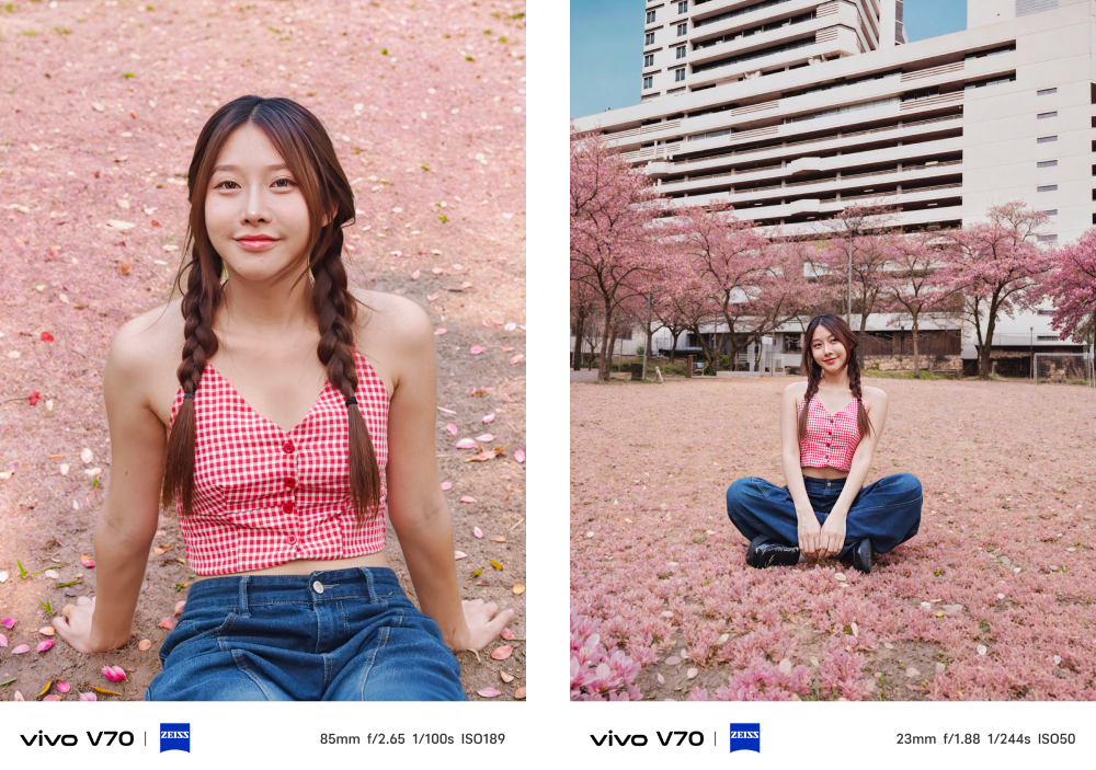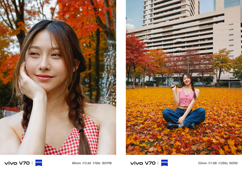 vivo V70 ยังคงใช้ชุดกล้องตัวเดิมที่หลายคนชมจาก vivo V60 ทั้งหมด ซึ่งประกอบด้วย กล้องหลัก ZEISS OIS เซนเซอร์ Sony IMX766 ขนาด 1/1.56″ ความละเอียด 50MP (OIS, f/1.88, FOV 84° ± 3°, 6P Lens) กล้องเลนส์ ZEISS Super Telephoto เซนเซอร์ Sony lMX882 ขนาด 1/1.95″ ความละเอียด 50MP มี OIS ในตัว (f/2.65, FoV 33.1°, 4P Lens) รองรับซูม Optical 3x และ Hyper Zoom 100x และปิดท้ายด้วยกล้องเลนส์ ZEISS Ultra Wide-angle ความละเอียด 8MP (f/2.0, FoV 120° ± 3, 5P Lens)
