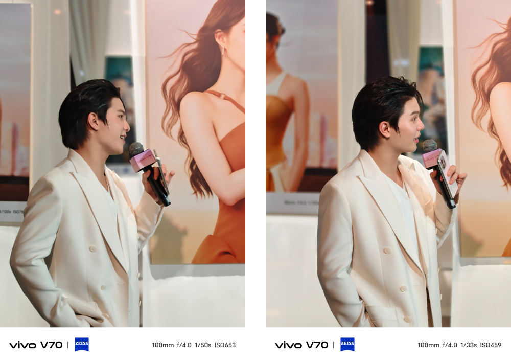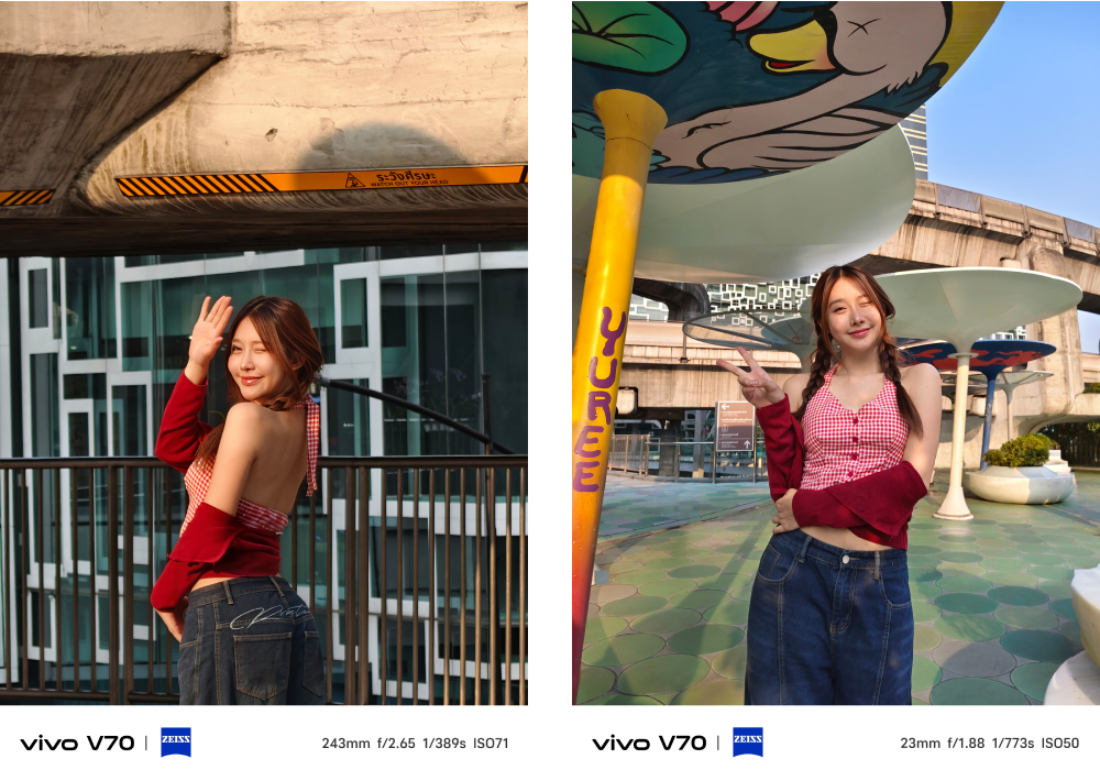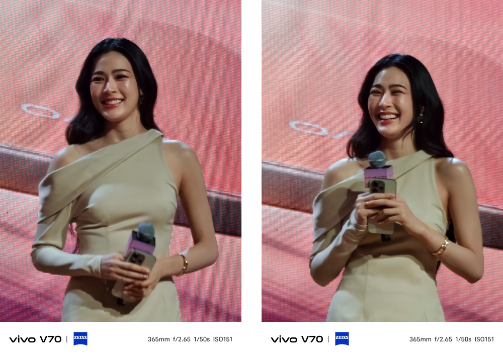 เสริมข้อมูลให้อีกนิดว่า การถ่ายระยะไกล vivo V70 จะสามารถซูมถ่ายจากตัวเซนเซอร์กล้องแบบ Optical Zoom ได้สุดที่ระยะ 10x เป็นระยะซูมไกลที่ภาพยังคม เหมือนดูหน้าเวที และขยับระยะซูมออกไปได้ไกลสุดที่ 100x ซึ่งที่ระยะไกลสุดนี้ตัวกล้องค่อนข้างนิ่งระดับนึงทำให้การเล็งถ่ายทำได้ง่ายกว่ากล้องทั่วไปครับ และที่ต้องชม vivo เลยก็คือ การใส่ซอฟต์แวร์ AI UHD เข้ามาช่วยอัปสเกลภาพถ่ายระยะไกล ซึ่งระยะ 100x เป็นการระยะ Digital Zoom ดังนั้นภาพถ่ายจะมีความเบลอค่อนข้างมาก แต่พอมีความสามารถของ AI เข้ามาช่วย ก็ทำให้เราได้ภาพที่คมชัดกลับมาได้