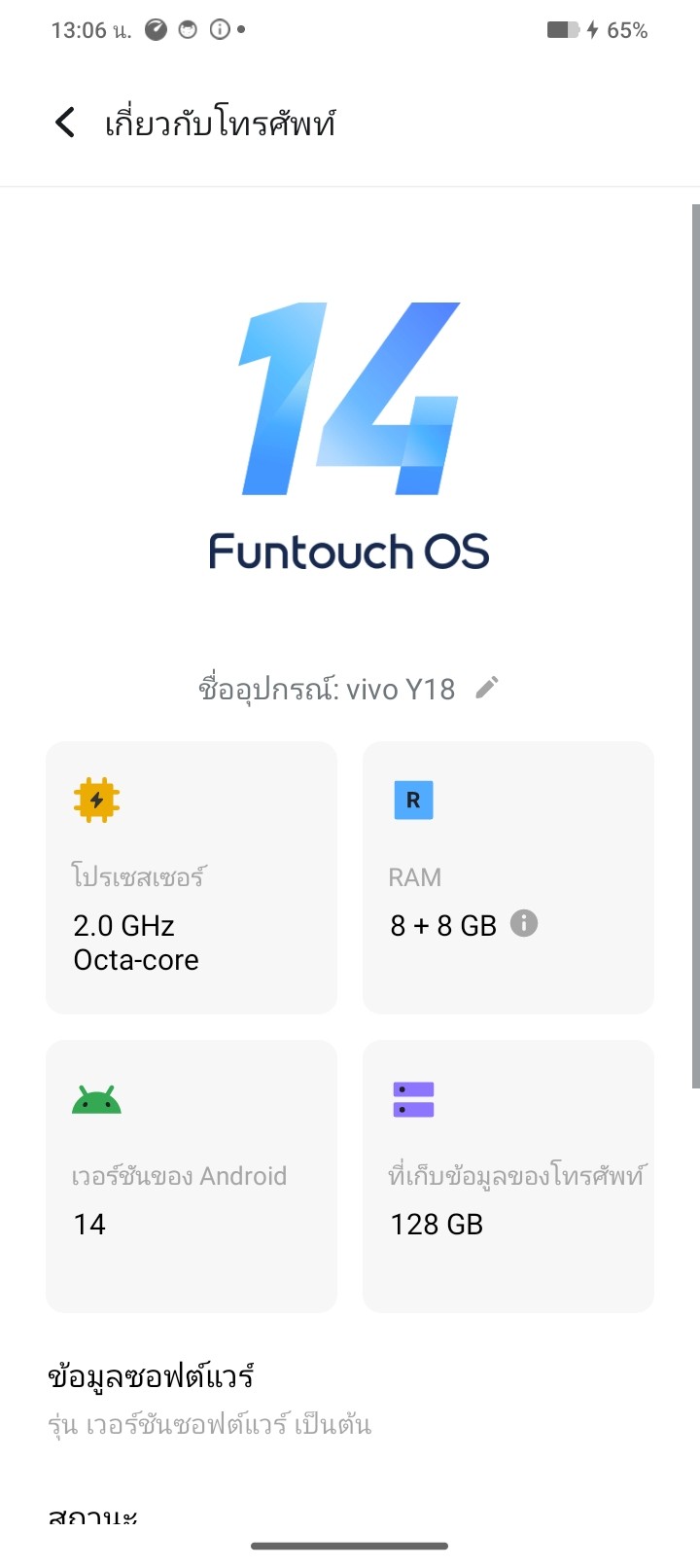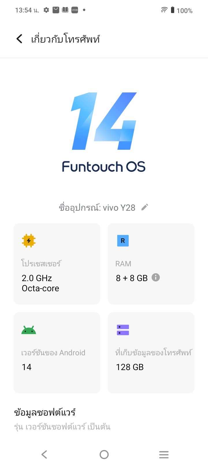 - ระบบปฏิบัติการ Android 14 ครอบทับด้วย Funtouch OS 14