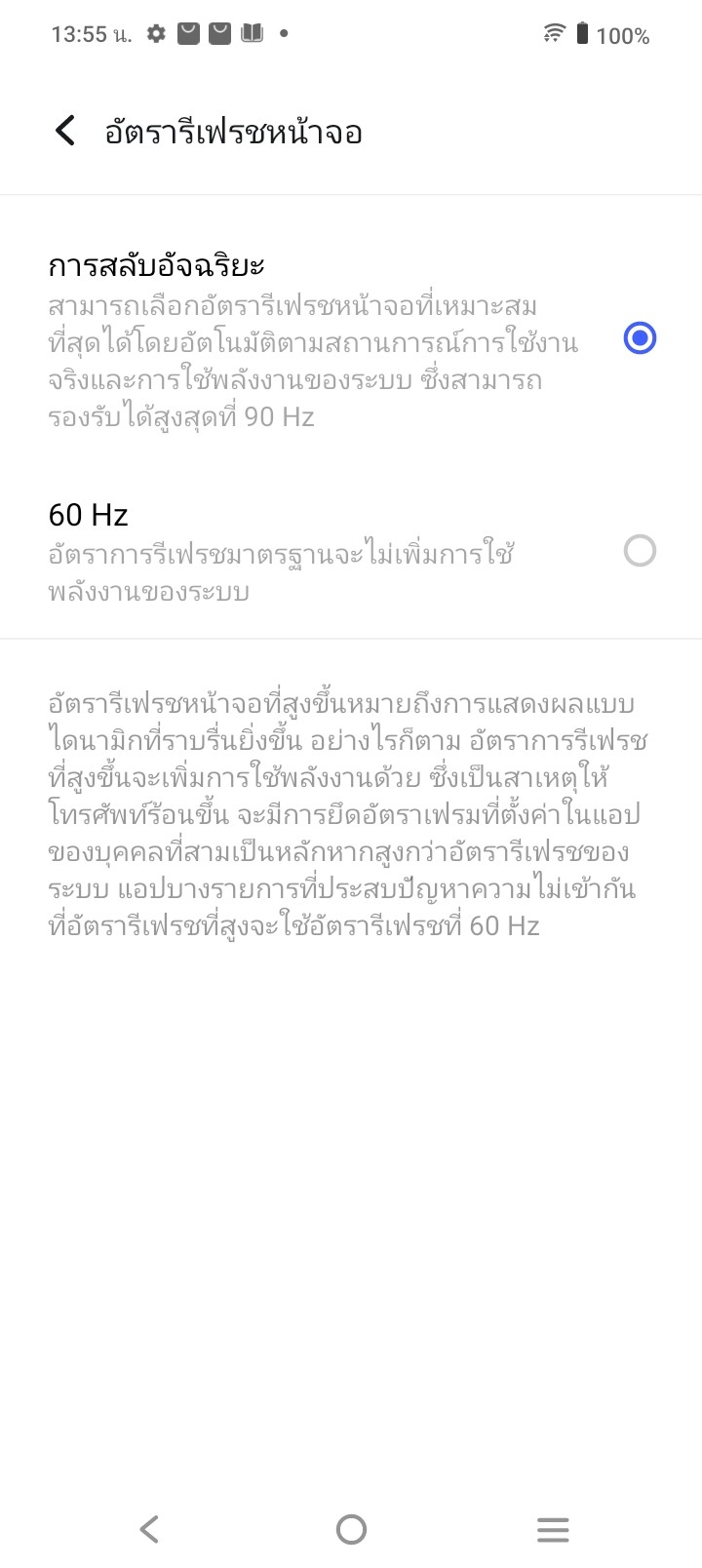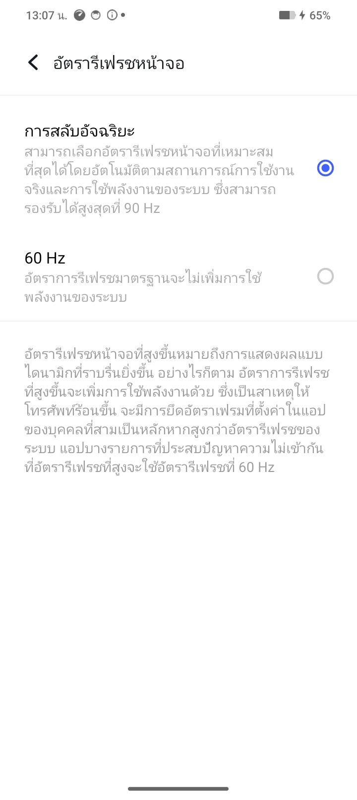 — Refresh Rate 90Hz (ปรับได้ 60Hz และ 90Hz)