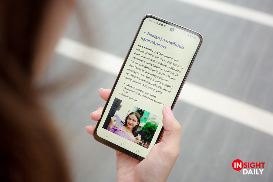 จอแสดงผลของ vivo Y28 เป็นอีกจุดเด่นของรุ่นนี้เลยทีเดียว เพราะนอกจากจะเป็นจอแสดงผลขนาดใหญ่ 6.68 นิ้ว HD+ รีเฟรชเรท 90Hz แล้ว ยังเป็นจอแสดงผลที่มีคุณสมบัติสู้แสง (High-Brightness Display) ด้วยค่าความสว่างสูงสุดที่ 1000nits จึงสามารถนำไปใช้งานท่ามกลางแดดสุดเดือดของเมืองไทยแล้วยังคงมองคอนเทนต์บนหน้าจอเห็นอยู่ นอกจากนี้ยังผ่านมาตรฐานแสงสีฟ้าต่ำจาก TÜV Rheinland เพิ่มความมั่นใจเรื่องสุขภาพดวงตา และสบายตาขณะใช้งานต่อเนื่องด้วย