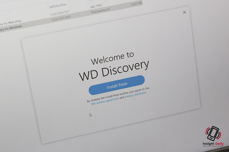 การเริ่มต้นใช้งานก็ไม่ยากอะไรเลยครับ เหมือนกับการที่เราใช้ Flash Drive ตามปกติ ก็คือเสียบสายเชื่อมต่อเข้ากับตัว WD My Passport SSD กับคอมพิวเตอร์ที่ต้องการจะใช้งานด้วยให้เรียบร้อย หลังจากนั้นก็จะมี Pop-up Install เด้งขึ้นมา โดยตัวซอฟต์แวร์จะบังคับให้เราลงโปรแกรม Utility ของ WD Discovery ก่อน เราก็ทำตามขั้นตอนไปเรื่อย ๆ ก็เป็นอันเสร็จ พร้อมใช้งานได้ทันที