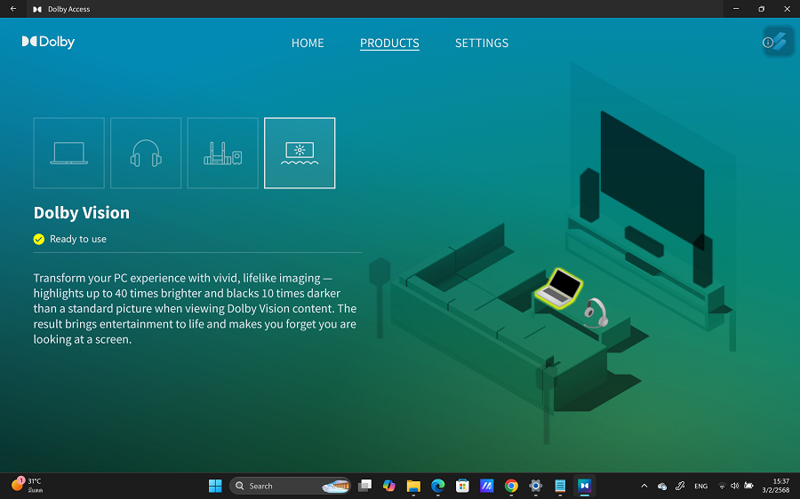 แม้ว่า ASUS Zenbook DUO (2025) UX8406 จะถูกออกแบบมาเพื่อใช้ทำงานโดยเฉพาะก็ตาม แต่ทาง ASUS ก็ยังใส่ฟีเจอร์ด้านความบันเทิงมาให้อย่างครบครัน ไม่ว่าจะเป็นเทคโนโลยีภาพ Dolby Vision และเทคโนโลยีเสียงเซอร์ราวด์ 360 องศา Dolby Atmos ซึ่งเมื่อใช้งานควบคู่กับหน้าจอ OLED และลำโพงบนเครื่องก็สามารถถ่ายทอดประสบการณ์ทั้งภาพและเสียงได้อย่างยอดเยี่ยมเลยทีเดียว นอกจากนี้ผู้ใช้ยังเข้าไปตั้งค่าภาพและเสียงได้ง่ายๆ ผ่านแอป Dolby Access อีกด้วย