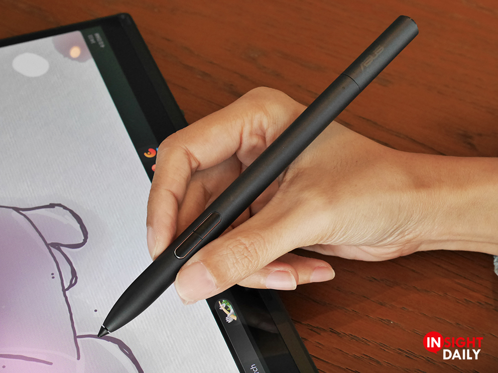 ASUS Pen 2.0 มาพร้อมคุณสมบัติความไวต่อแรงกดที่ 4,096 ระดับ จึงตอบสนองทั้งการจด วาด หรือเขียน ได้อย่างละเอียดแม่นยำ รวมถึงตัวด้ามปากกาเป็นทรงกลมน้ำหนักเบา จับถือถนัด และใช้ได้นาน 140 ชั่วโมงต่อการชาร์จเต็มหนึ่งครั้ง นอกจากนี้ยังมาพร้อมกับปุ่มคีย์ลัดที่ปรับตั้งค่าได้