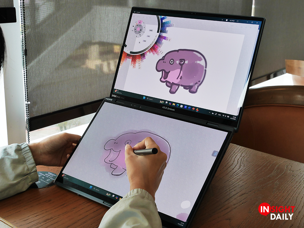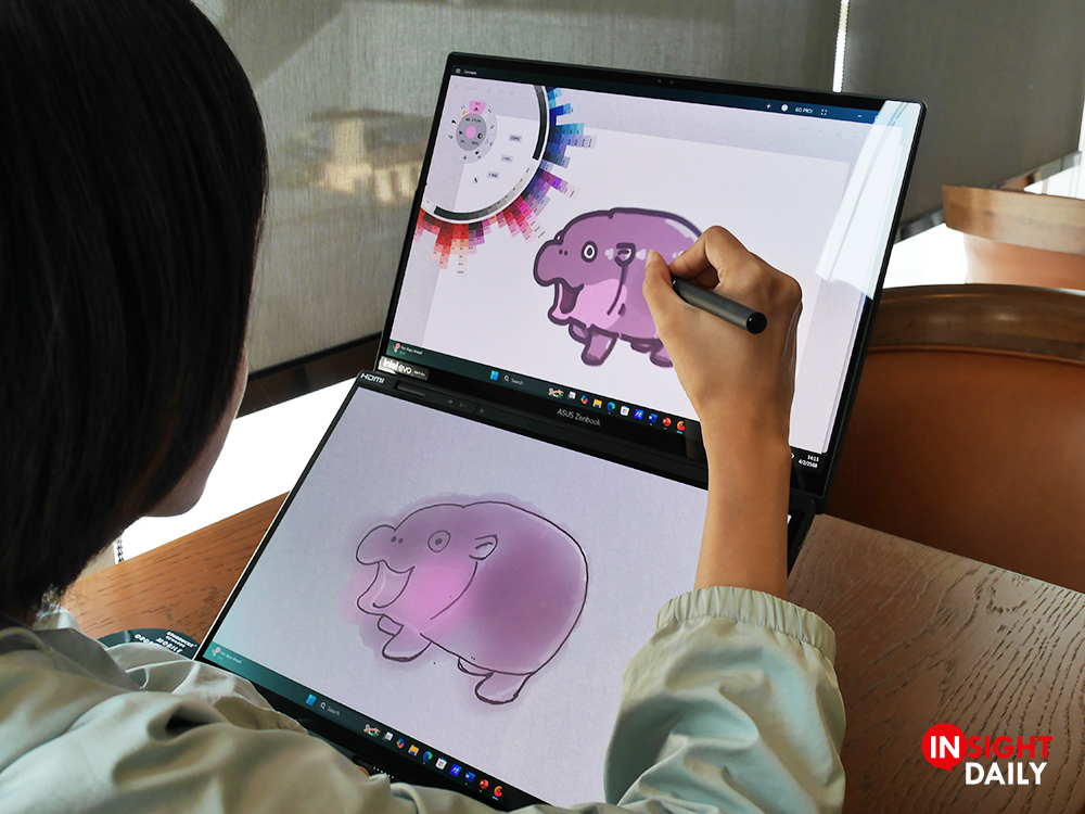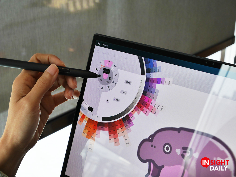 เมื่อทดสอบวาดรูปด้วยปากกาสไตลัส ASUS Pen 2.0 ร่วมกับแอป Concepts ให้ประสบการณ์ใช้งานคล้ายกับการวาดในกระดาษจริงๆ ไม่มีอาการแลค หน่วง ช้าแต่อย่างใด โดยรวมแล้วเป็นประสบการณ์ใช้งานปากกาสไตลัสที่ยอดเยี่ยมเลยทีเดียว และมีอีกสิ่งหนึ่งที่ถือเป็นไฮไลท์เด็ดที่ช่วยให้ปากกาสไตลัส ASUS Pen 2.0 ได้ใช้ประโยชน์อย่างเต็มประสิทธิภาพก็คือการที่รุ่นนี้เป็นโน้ตบุ๊กสองหน้าจอจึงสามารถขยายพื้นที่สำหรับวาดรูปในแอป Concepts ให้กว้างขึ้นเป็น 19.8 นิ้ว เรียกได้ว่ากลายร่างเป็นแท็บเล็ตสำหรับวาดรูปกราฟิกเลยก็ว่าได้