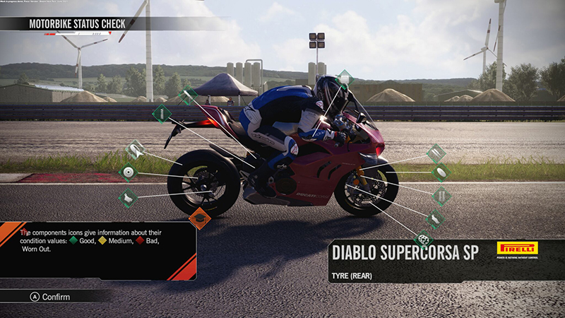 RiMS Racing มาพร้อมกับระบบ Motorbike Status Check (MSC) เป็นเมนูในการแข่งขันที่แสดงการสึกหรอของชิ้นส่วนตามการใช้งานจริง ด้วยสิ่งนี้อาจมีประโยชน์หากคุณกำลังจัดการด้านประสิทธิภาพของรถจักรยานยนต์ของคุณในระหว่างการแข่งขันที่ยาวนานขึ้นหรือต้องการตรวจสอบสภาพของส่วนประกอบหลังจากการล้มหรืออุบัติเหตุระหว่างแข่ง