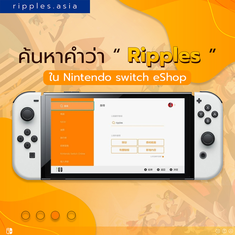 ขั้นตอนที่ 3: หยิบ Nintendo Switch ขึ้นมา แล้วเข้าไปที่แอพ Nintendo Switch eShop ค้นหาคำว่า “Ripples”
