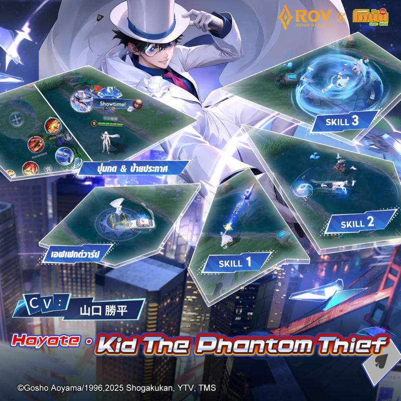 Arena of Valor (RoV) ประกาศความร่วมมือสุดพิเศษกับอนิเมะระดับตำนาน Detective Conan ยอดนักสืบจิ๋วโคนัน เตรียมเปิดอีเวนต์จำกัดเวลาในเกม RoV ตั้งแต่วันที่ 1 สิงหาคม 2568 เป็นต้นไป ภายใต้ความร่วมมือนี้ ฮีโร่ Yorn จะแปลงโฉมเป็น “เอโดงาวะ โคนัน” เจ้าของฉายา นักเรียนประถมที่แข็งแกร่งที่สุด ขณะที่ Hayate จะสวมบทบาทเป็น “จอมโจรคิด (Kid the Phantom Thief)” จอมโจรในตำนานผู้ลึกลับ