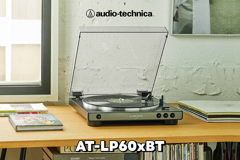 ส่วน AT-LP60XBT เป็นเครื่องเล่นแผ่นเสียงที่ได้รับการพัฒนาขึ้นใหม่ต่อยอดจากรุ่น AT-LP60X ซึ่งเป็นเครื่องเล่นแผ่นเสียงสเตอริโอแบบ Belt-Drive อัตโนมัติชนิดไร้สายและสามารถเชื่อมต่อได้ทั้งแบบอนาล็อกและ USB อีกทั้งยังสามารถเชื่อมต่อโดยตรงกับลำโพง คอมพิวเตอร์ และเครื่องเสียงชนิดอื่น ๆ เพื่อให้เสียงออกมาในรูปแบบสเตอริโอ ตัวเครื่องถูกออกแบบมาให้ใช้จานหมุนที่ผลิตจากอะลูมิเนียมหล่อขึ้นรูป ทำให้มีน้ำหนักเบาและหมุนได้ไม่สะดุด AT-LP60XBT ยังคงรักษาคุณภาพเสียงสุดคมชัดที่เป็นเอกลักษณ์ไว้ แต่เพิ่มประสิทธิภาพในการเชื่อมต่อผ่านบลูทูธ เพื่อให้คอเพลงสามารถเชื่อมต่อกับลำโพง หรือหูฟังไร้สายได้คล่องตัวมากขึ้น โดยสามารถเลือกตามความต้องการ มาพร้อมฝาครอบกันฝุ่นที่สามารถถอดออกได้ โดย AT-LP60XBT มีให้เลือก 2 สีคือ Black และ White พร้อมวางจำหน่ายในราคา 8,900 บาท
