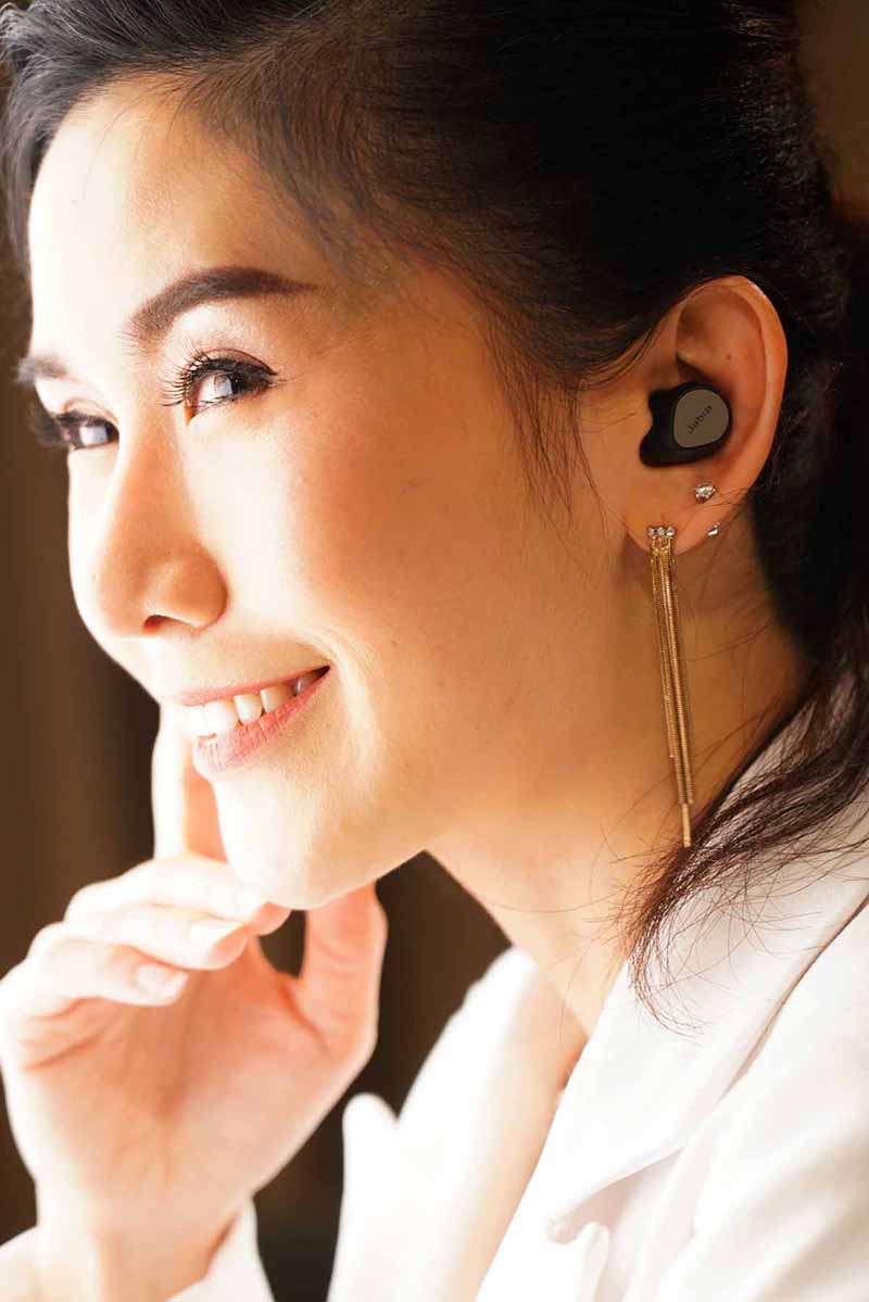 ขณะที่ Jabra Elite7 Active เป็นหูฟัง True Wireless ระดับพรีเมี่ยมที่มาพร้อมเทคโนโลยี Jabra ShakeGrip™ ในการผลิตตัวหูฟังที่ไร้รอยต่อ โดยยางซิลิโคนเหลว (Liquid Silicon) จะช่วยเพิ่มการยึดเกาะให้หูฟังไม่หลุดง่ายแม้ในขณะเคลื่อนไหวและยังให้ความทนทาน กันน้ำ กันเหงื่อ เหมาะสำหรับคนรักเสียงเพลงที่ชื่นชอบการออกกำลังกายในดีไซน์ที่กะทัดรัด นอกจากนี้ยังมาพร้อมเสียงที่ทรงพลังด้วยลำโพงขนาด 6 มม. ผสานเทคโนโลยีระบบตัดเสียงรบกวนแบบ ANC แบบ Feedforward จึงทำให้เสียงมีความคมชัดทุกสถานการณ์ ขณะเดียวกันยังมาพร้อมไมโครโฟน 4 ตัวและรองรับการเชื่อม Bluetooth 5.2 รวมถึงมีฟังก์ชั่น HearThrough ที่ทำให้คุณได้ยินเสียงจากภายนอกโดยไม่ต้องถอดหูฟังให้เสียเวลา ช่วยให้ไม่พลาดการติดต่อ และปลอดภัยเมื่ออยู่บนท้องถนน ยิ่งไปกว่านั้น ตัวหูฟังยังออกแบบให้ทนต่อละอองน้ำและฝุ่นตามมาตรฐาน IP57 พร้อมรองรับการทำงานร่วมกับแอปฯ Jabra Sound+ เพื่อให้ผู้ใช้งานสามารถปรับแต่งเสียงต่างๆ ผ่านมือถือได้ด้วยตัวเองอย่างง่ายดาย แบตเตอรี่รองรับการใช้งานได้ยาวนานต่อเนื่อง 8 ชั่วโมง เมื่อเปิด ANC และอยู่ได้นาน 30 ชั่วโมงเมื่อใช้ร่วมกับเคสชาร์จ และยังรองรับการชาร์จเร็วด้วย USB-C โดยชาร์จแค่ 10 นาที สามารถฟังเพลงได้นานอีก 90 นาที โดยมีให้เลือก 3 สี ได้แก่ Black / Navy และ Mint พร้อมวางจำหน่ายในราคา 6,790 บาท