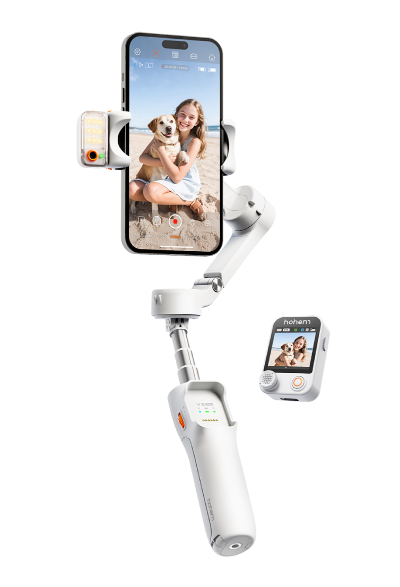 Hohem iSteady V3 Ultra ยังมาพร้อมอัลกอรึธึมกันสั่น iSteady 9.0 Stabilization และโครงสร้างแบบ 3 แกน ช่วยลดการสั่นไหวได้อย่างเหนือชั้น พร้อมด้ามจับแบบยืดได้ 205 มม. และขาตั้งในตัว เหมาะสำหรับการถ่ายเซลฟี่และกรุ๊ปช็อต และการเปลี่ยนมุมสูง-ต่ำได้อย่างง่ายดาย มีไฟเสริม (Fill Light) ที่ช่วยให้คุณปรับความสว่างและโทนแสงได้ 3 แบบ ทั้ง Cool, Neutral และ Warm ควบคุมการใช้งานได้ผ่านรีโมท