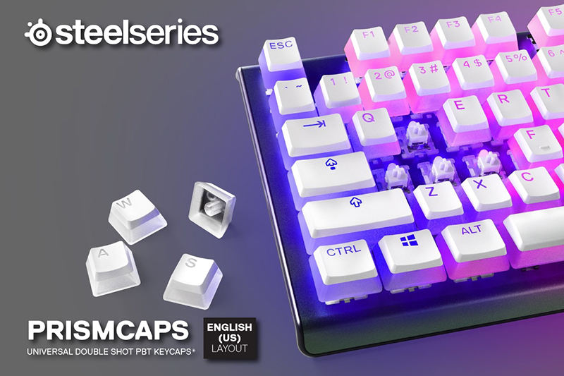 นอกจากนี้ ตัวคีย์แคปจะทำจากวัสดุโปร่งแสงด้านข้างและตัวอักษรทำให้แสดงแสงไฟ RGB ชัดเจนสะดุดตามากขึ้น โดยปุ่มกดคีย์บอร์ดออกแบบมาให้ใช้งานได้กับคีย์บอร์ดแบบ Mechanical ทั้งของ SteelSeries และ แบรนด์ชั้นนำทั่วไป สำหรับรุ่นคีย์บอร์ดของ SteelSeries ที่รองรับ PrismCaps ได้แก่ Apex Pro, Apex Pro TKL, Apex 7, Apex 7 TKL, Apex 5, Apex M750 และ Apex M750 TKL โดยมีให้เลือก 2 สีคือ สีขาว และสีดำ วางจำหน่ายในราคา 1,490 บาท