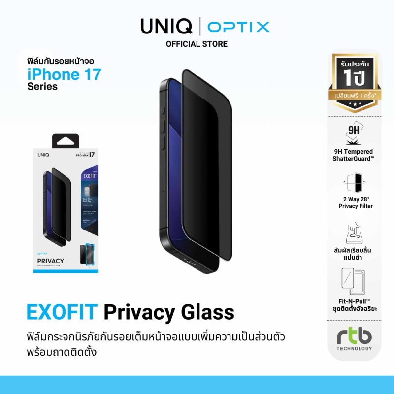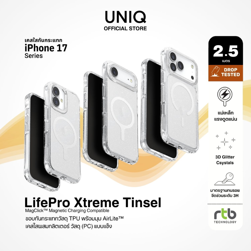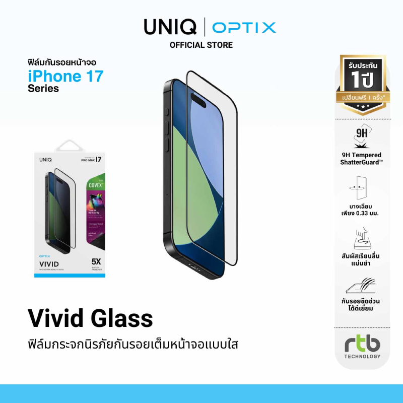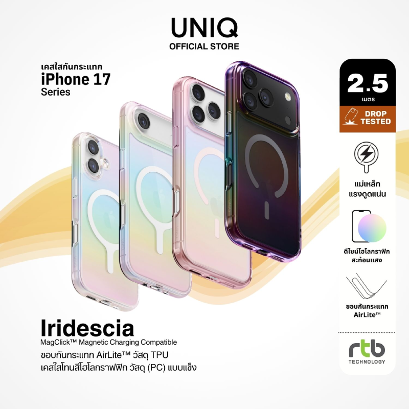 ผลิตภัณฑ์เคสกันกระแทก UNIQ และฟิล์มกันรอยหน้าจอและเลนส์กล้อง OPTIX สำหรับ iPhone 17 Series พร้อมวางจำหน่ายแล้ววันนี้ ที่ร้านค้าในเครือ Com7 (Studio7, BaNANA, Bb Beyond D-Box), SPVi (iStudio by SPVi), Uficon (iStudio by Uficon), Power Mall, Apple House, Focus Store, iDEVICE, Advice, B2S, ช่องทางออนไลน์ที่ rtbtechnology.org/m/uniq-thailand, Shopee, Lazada และ Tiktok Shop ติดตามโปรโมชั่นและข้อมูลสินค้าเพิ่มเติมได้ที่ www.facebook.com/uniqbyrtb